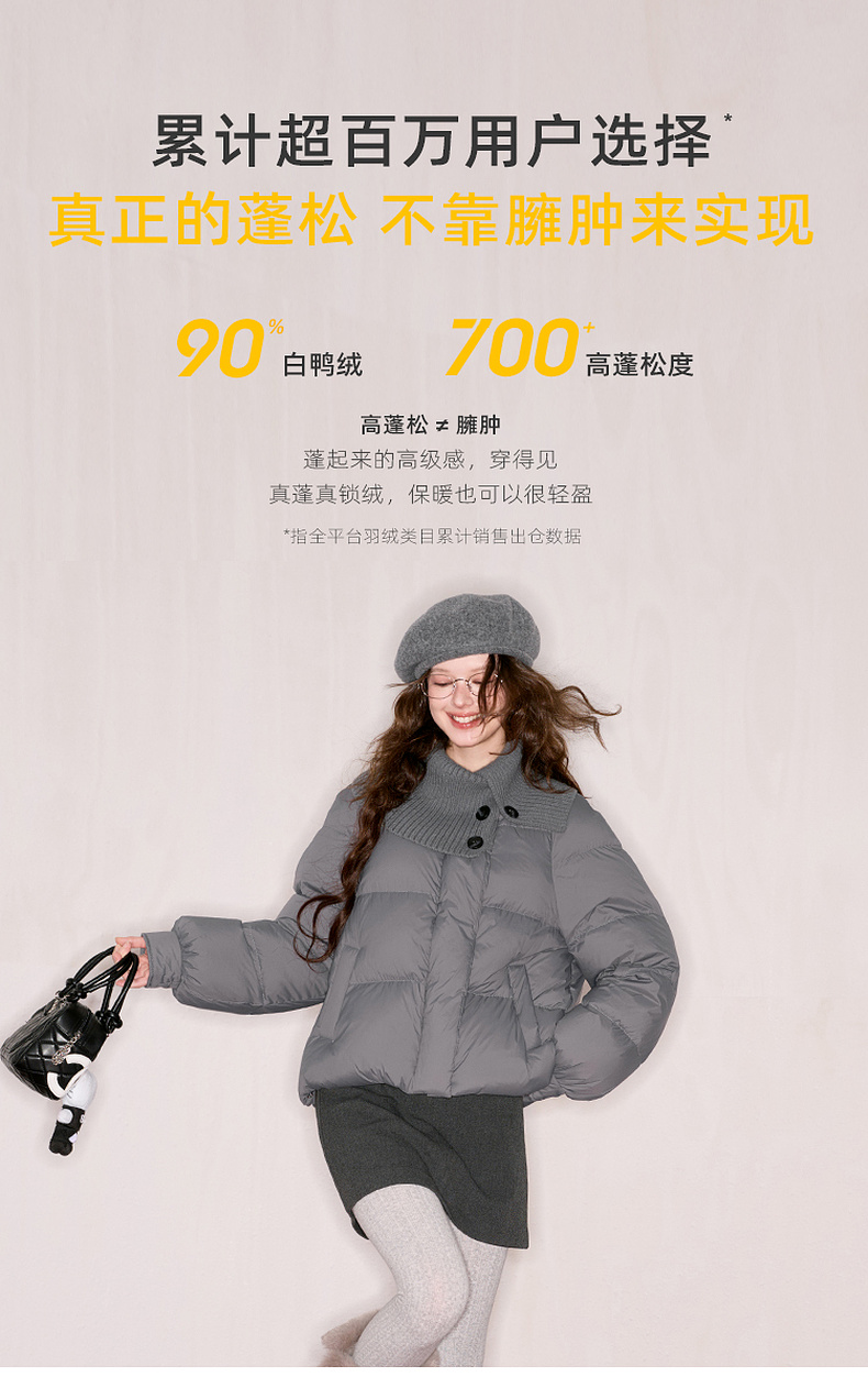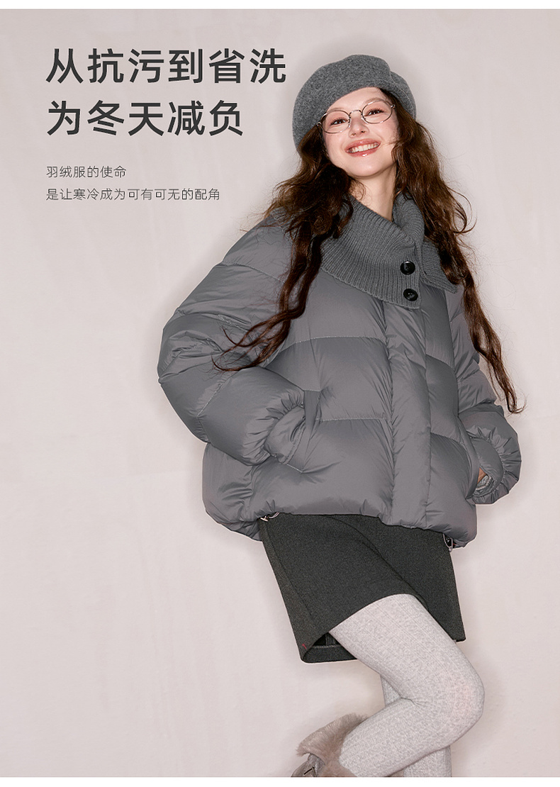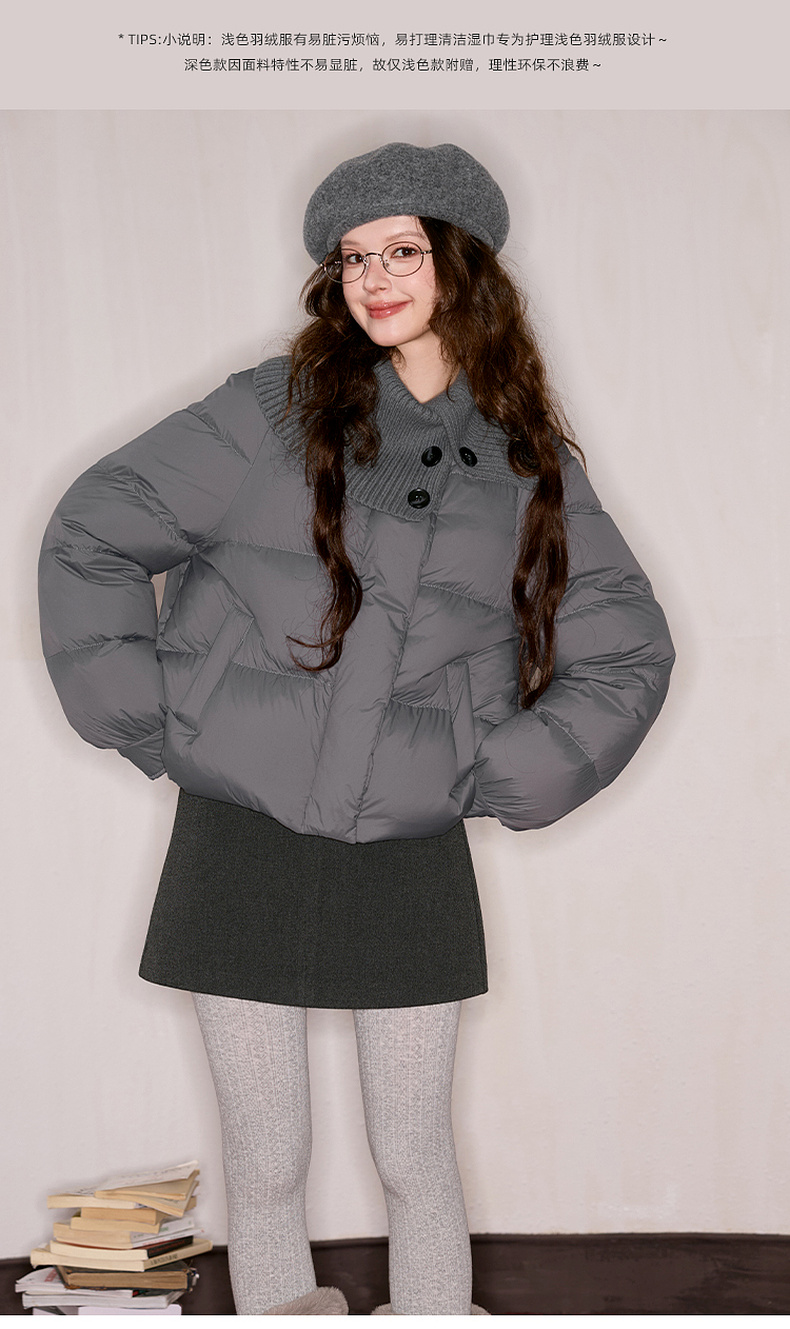 【防水易打理】三彩独醒2025冬季新款短款羽绒服90白鸭绒面包服F