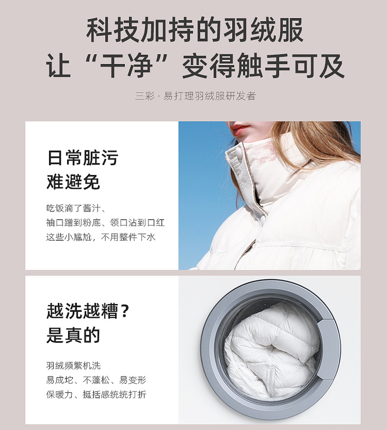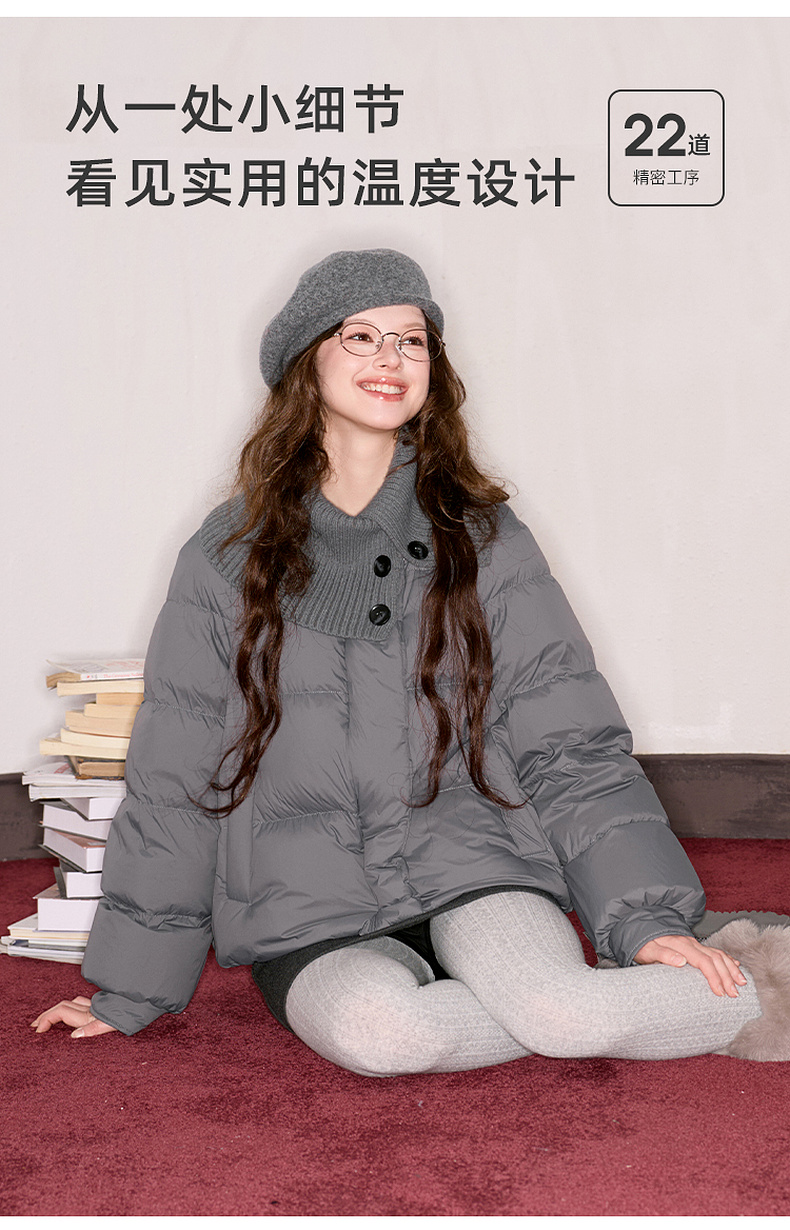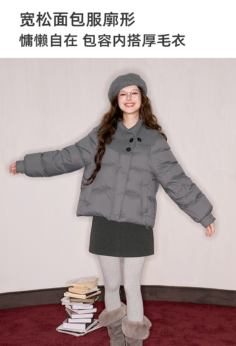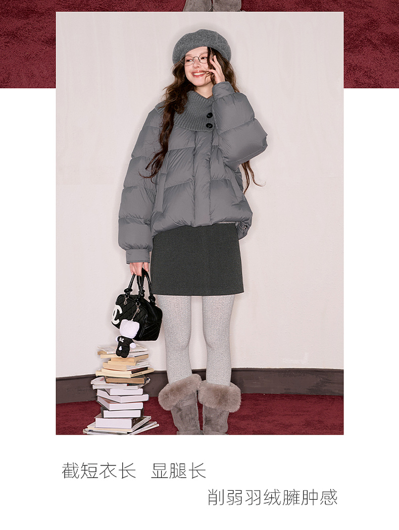 【防水易打理】三彩独醒2025冬季新款短款羽绒服90白鸭绒面包服F