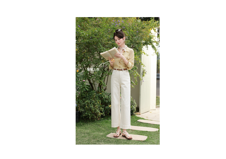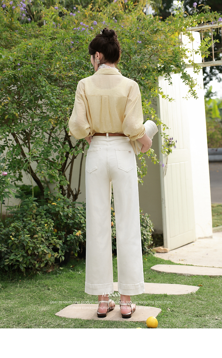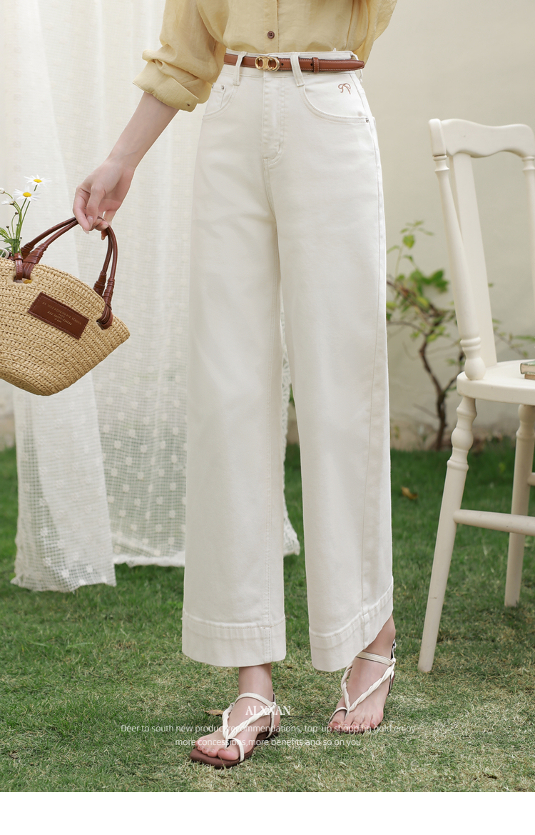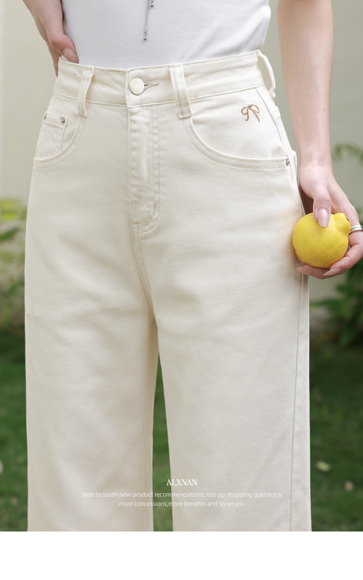 鹿向南「漫步边界」高腰休闲杏色牛仔裤女春夏季新款宽松阔腿裤子