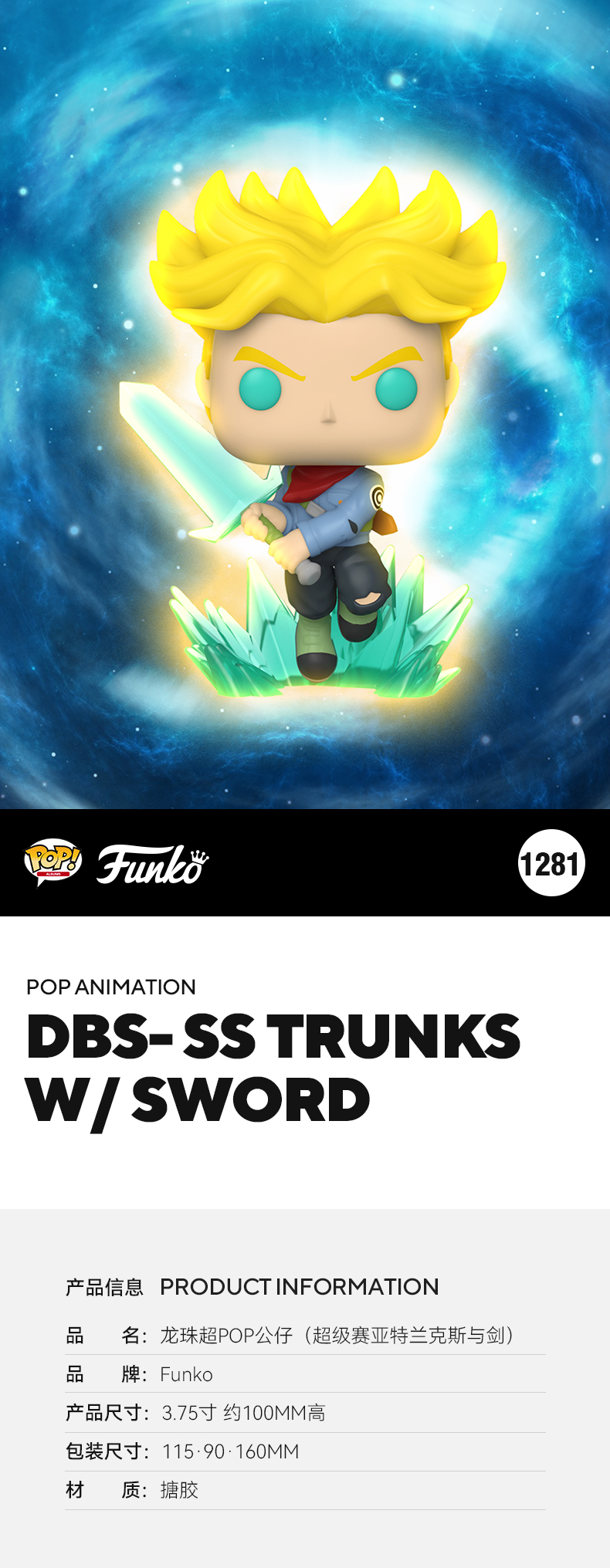 Funko POP! Super saiyan trunks日漫 龙珠超 超级赛亚特兰克斯与剑公仔手办摆件 58019