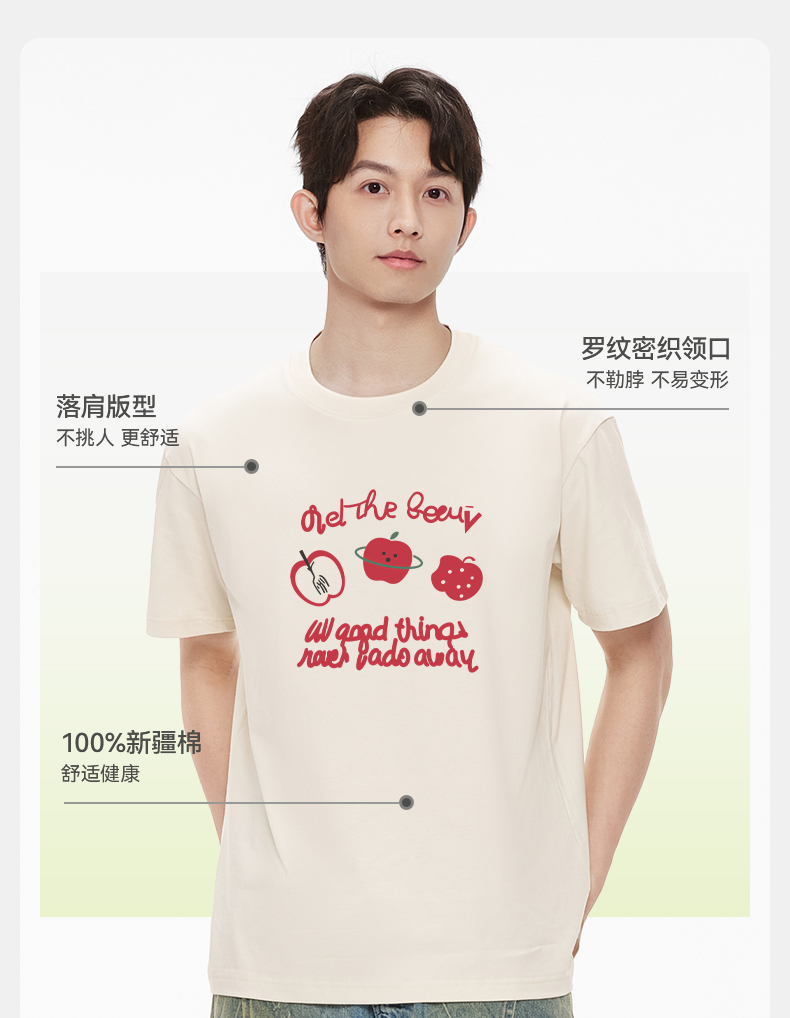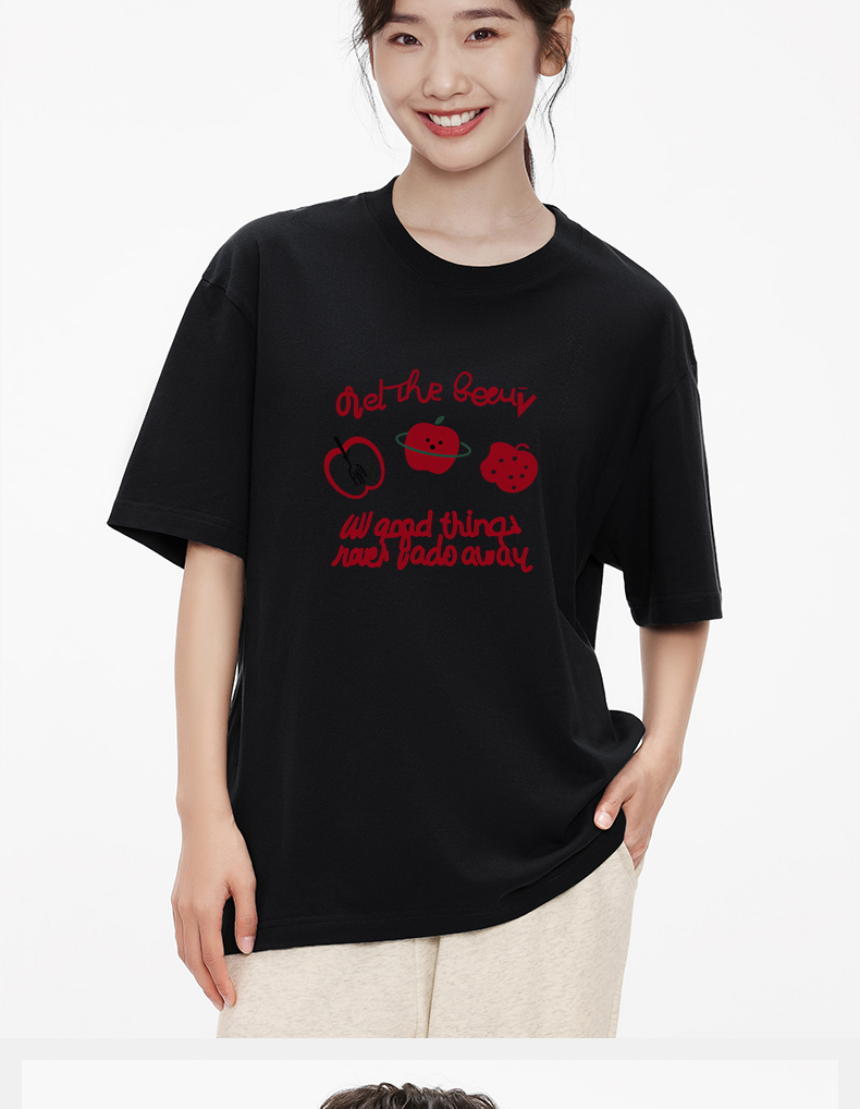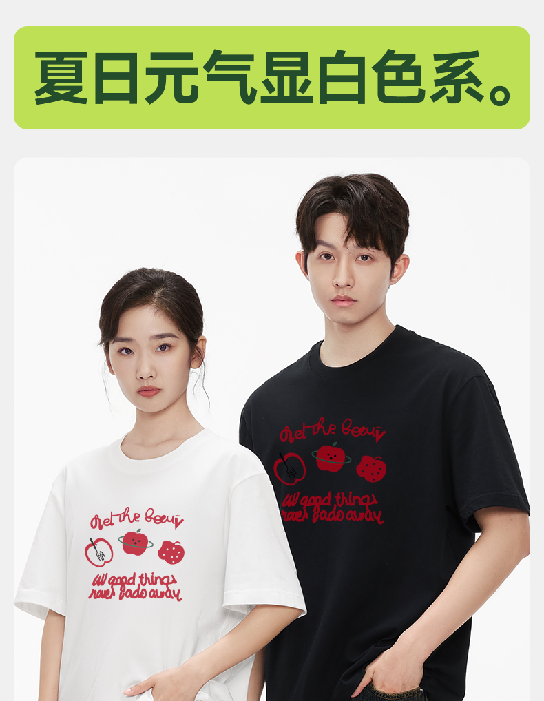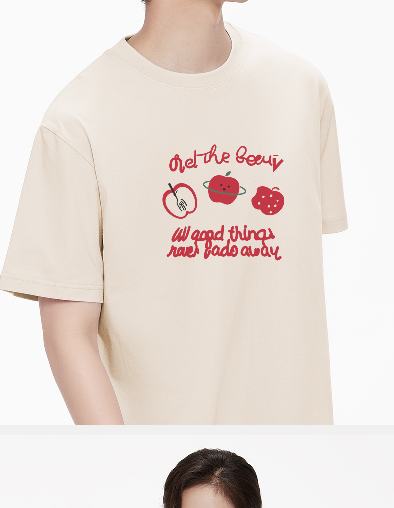 「棉的美学」重磅纯棉苹果印花T恤夏季宽松百搭男女同款半袖上衣