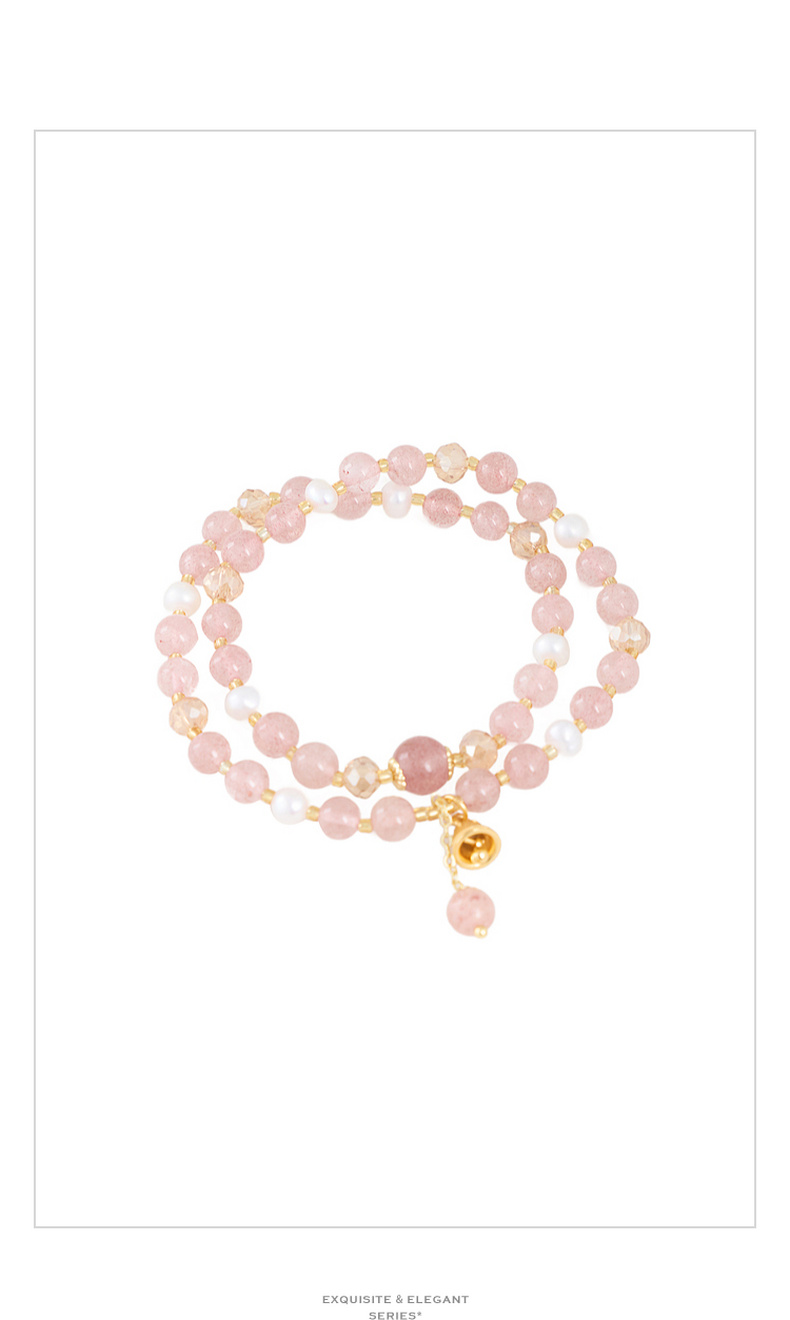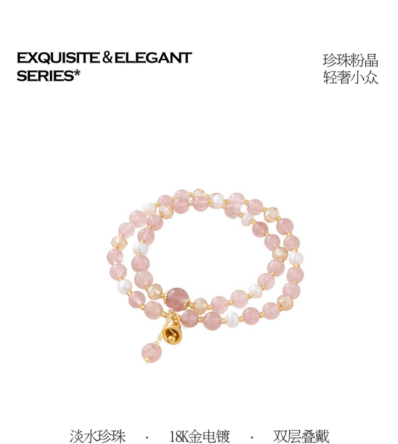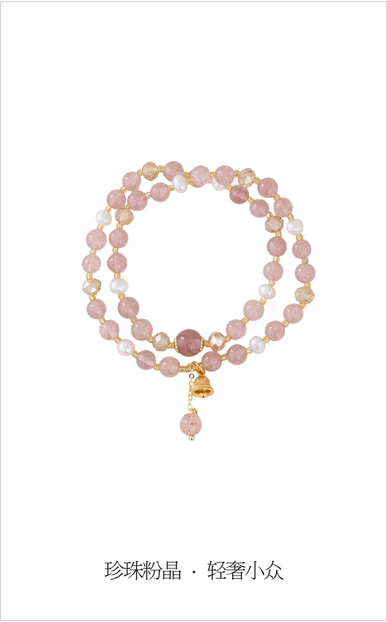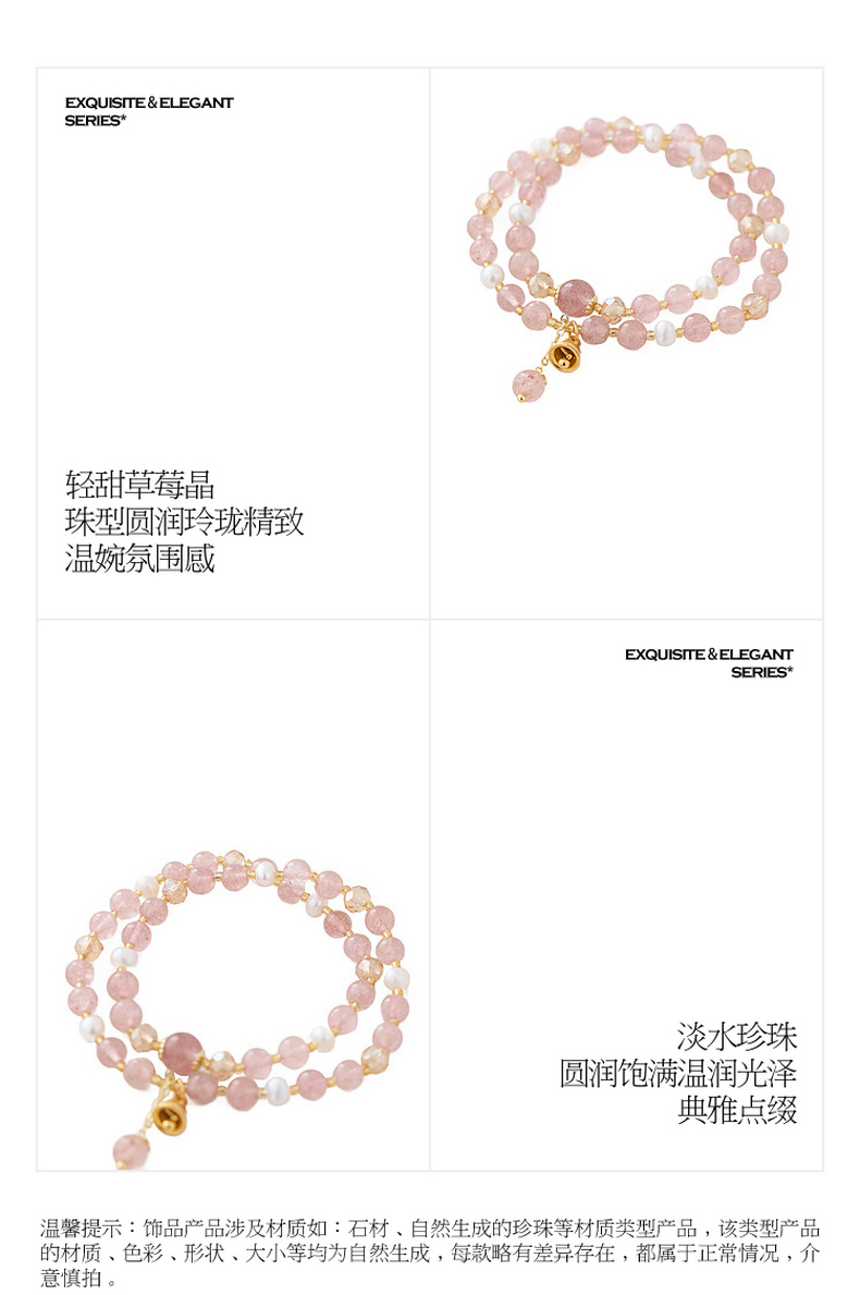 三彩2026新款草莓晶双层叠戴手串交桃花淡水珍珠温柔甜美小众简约