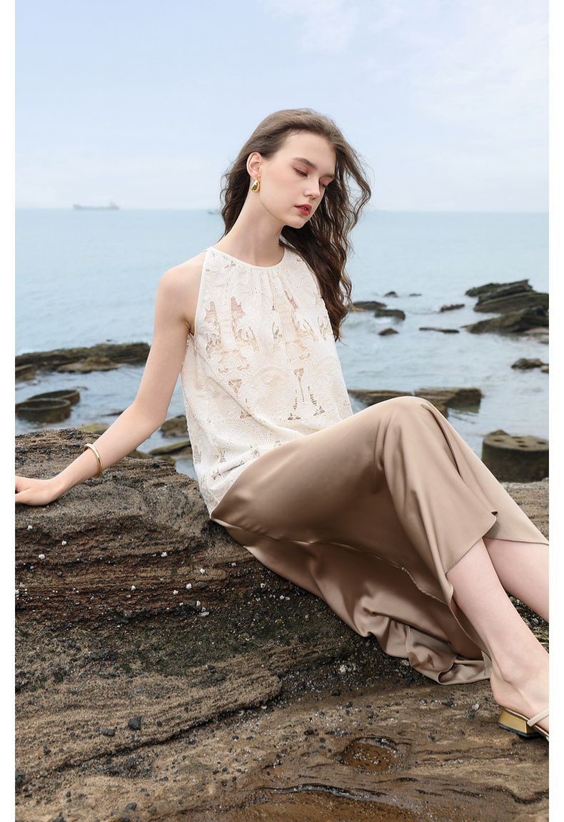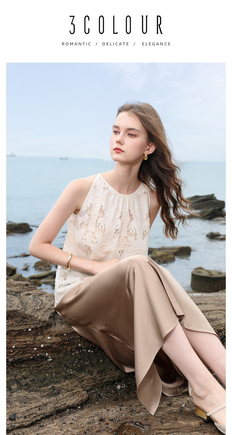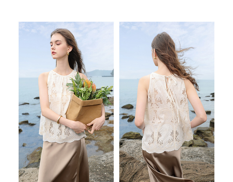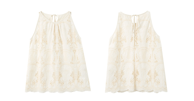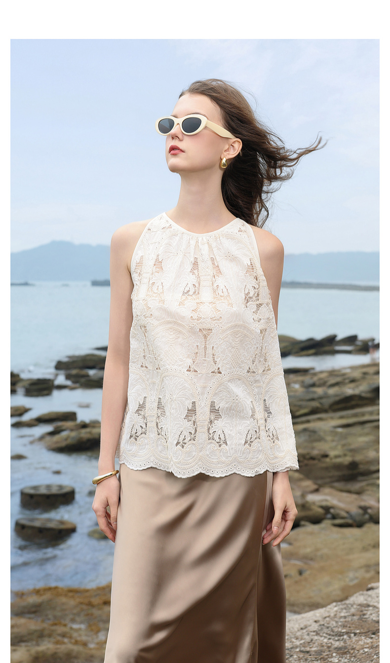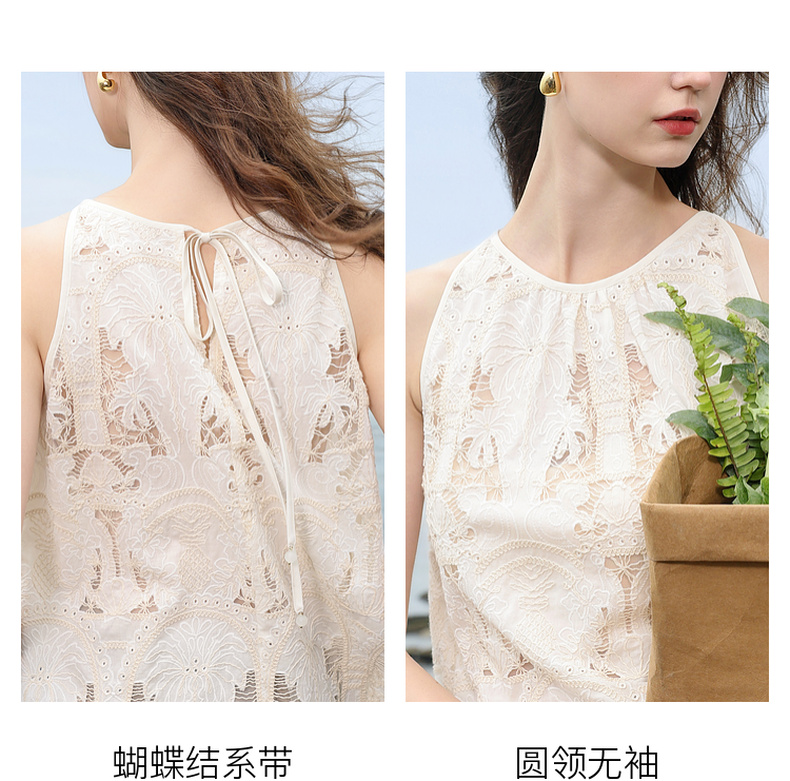 三彩2025夏季新款宽松无袖绣花娃娃衫衬衣圆领套头小衫减龄M