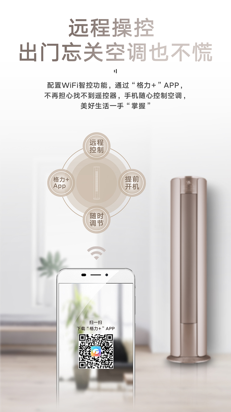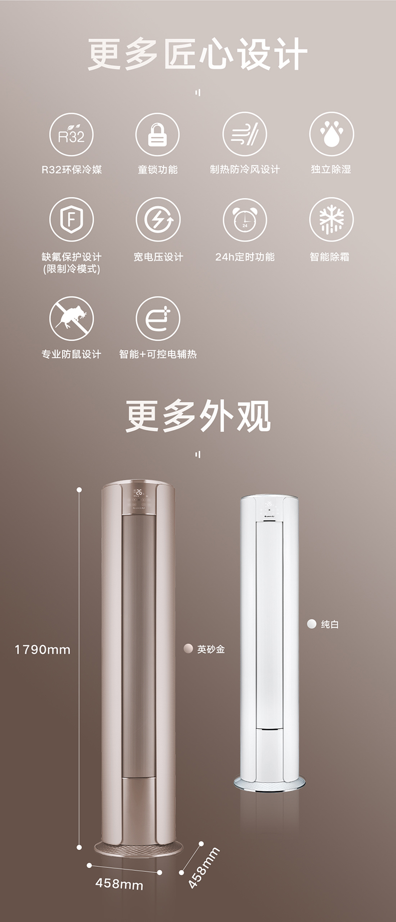格力/空调/KFR-72LW/(72555)FNhAb-B1(WIFI)(含管)(英砂金)/空调套餐-I尚1级3匹金色柜机