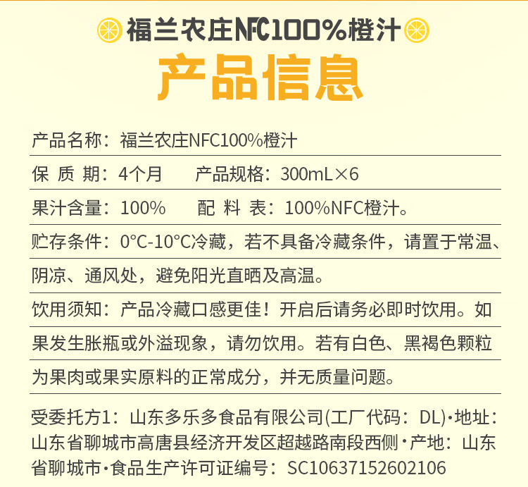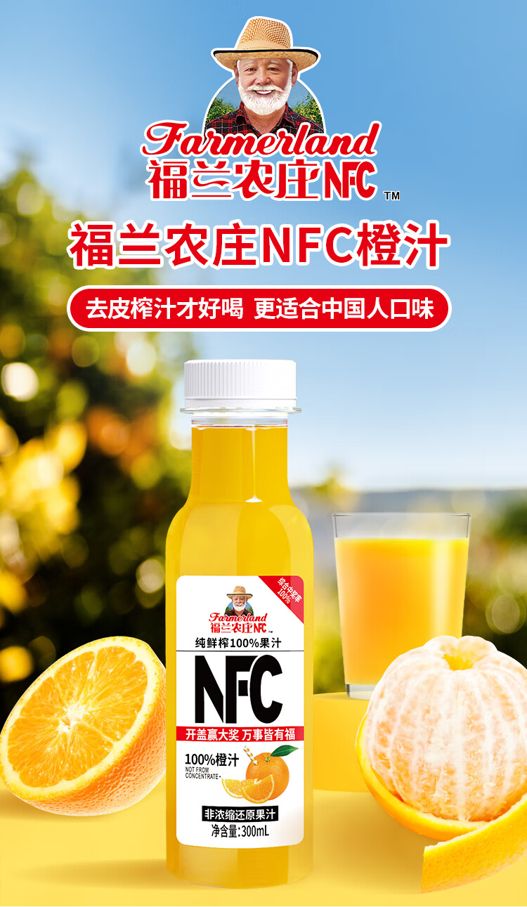 福兰农庄NFC100%橙汁300ml*6【PET】