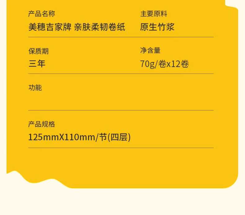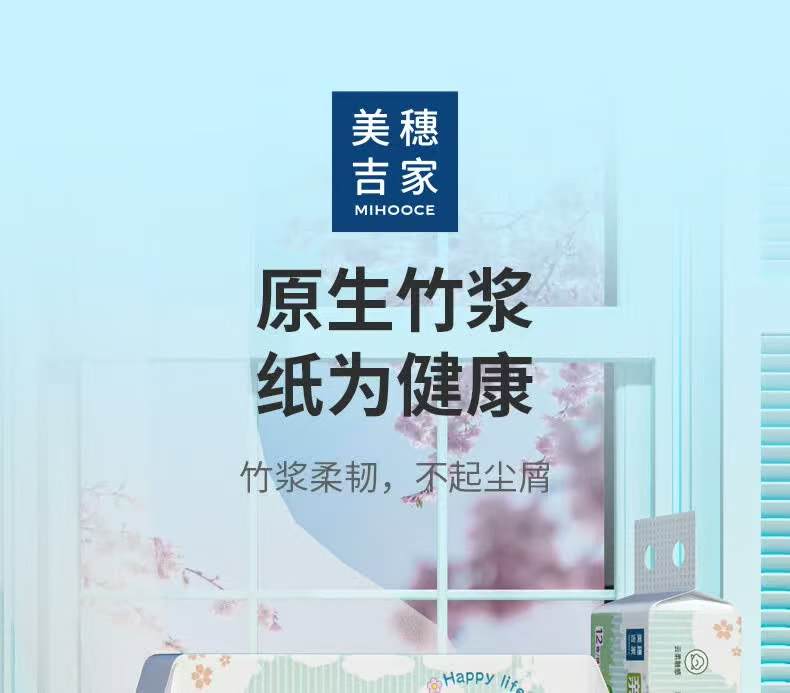 美穗吉家 本色竹浆卷纸 4层加厚 70g/卷*12卷*2提