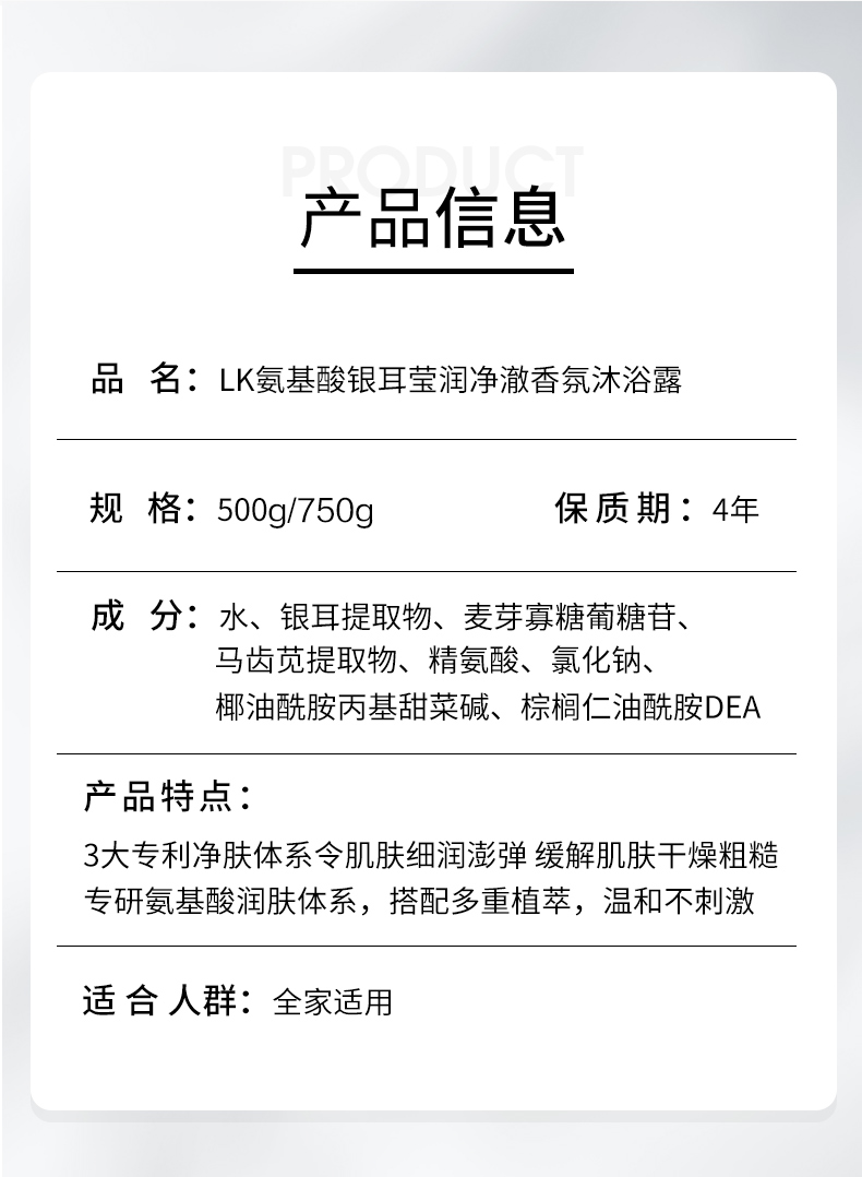 LK 氨基酸银耳盈润净澈香氛沐浴露(栀子花香型)500g
