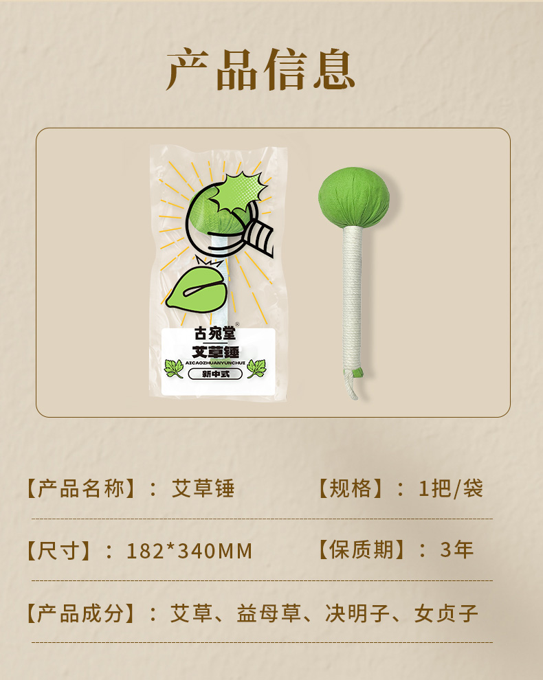 【合理配比】古宛堂 艾草转运锤 1个 仿麻锤头草本植物填充