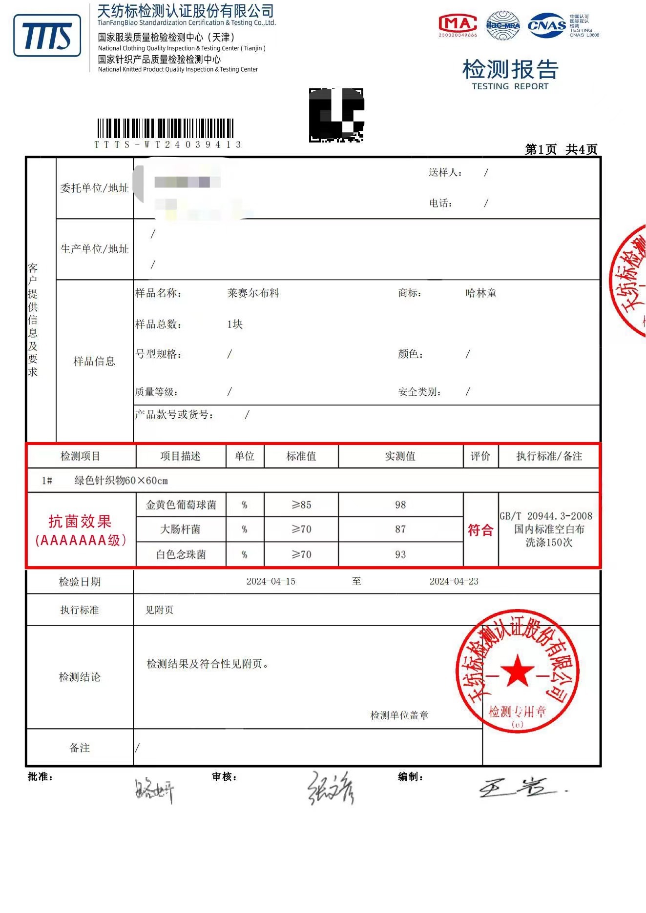 给宝宝穿的衣服怎能随意,A类婴幼儿检测标准以及市面上顶尖的抗菌效果,远超7A标准!单单做个检测就要20多天,为的就是孩子的健康!