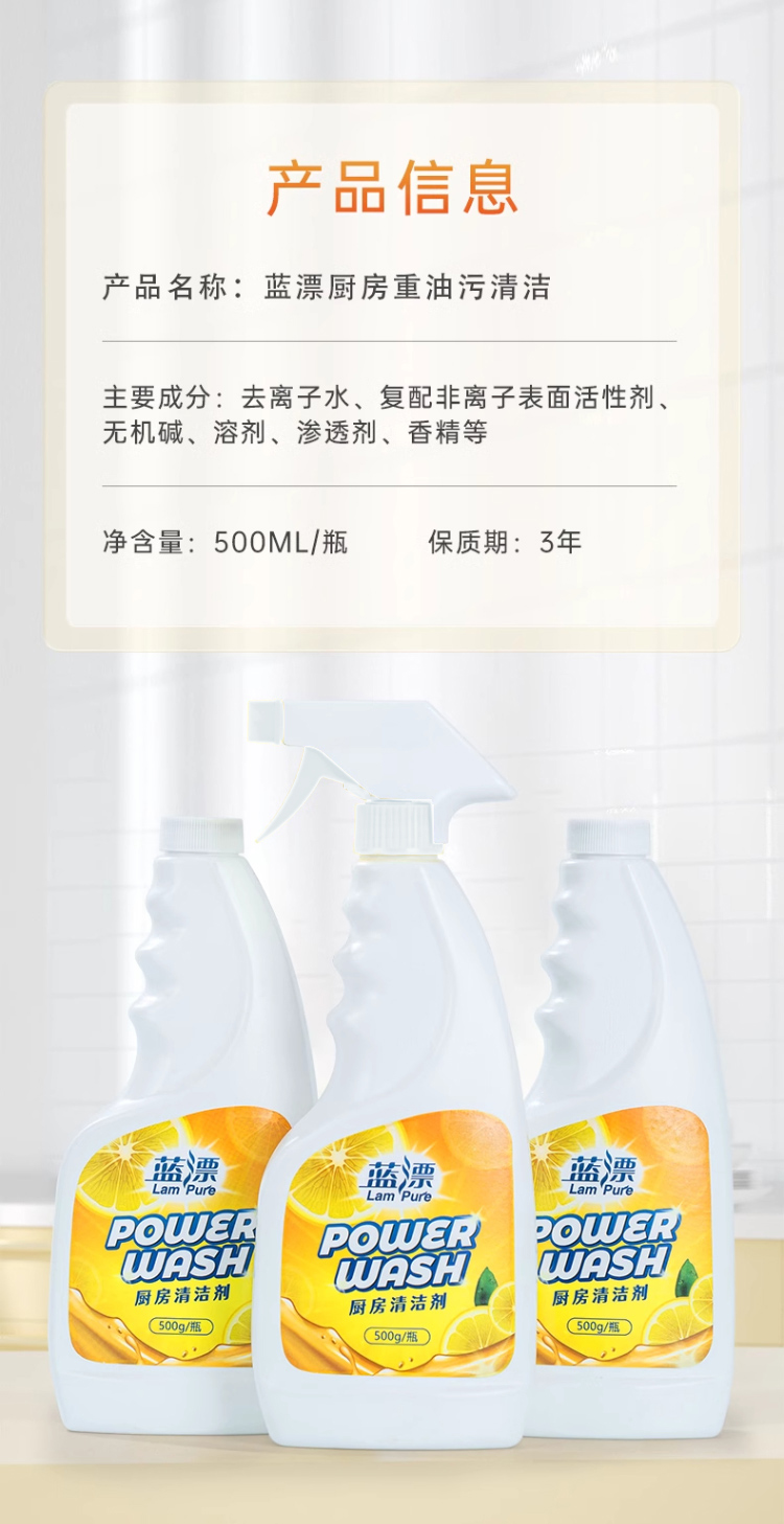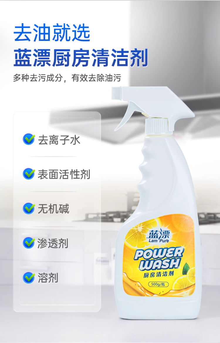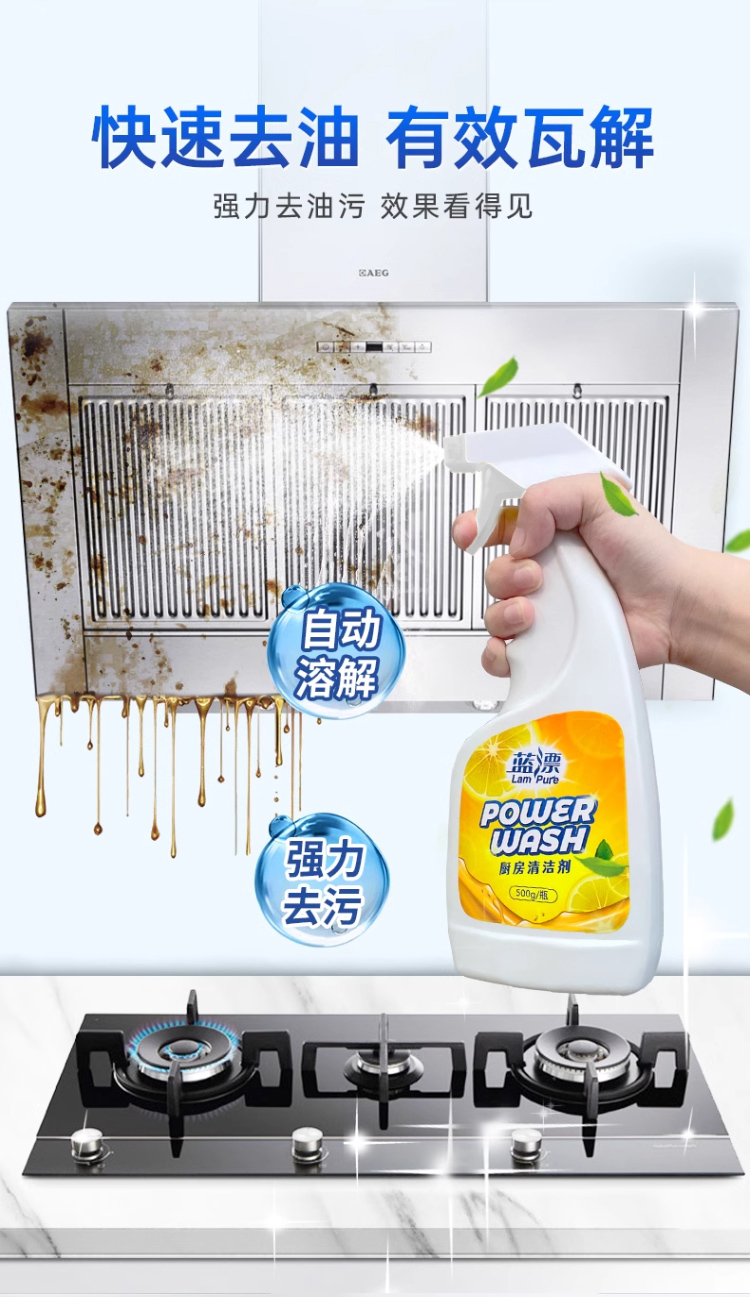 【蓝漂】厨房清洁剂500ml 油污净抽油烟机清洗除垢 强力深层去重油渍去污神器