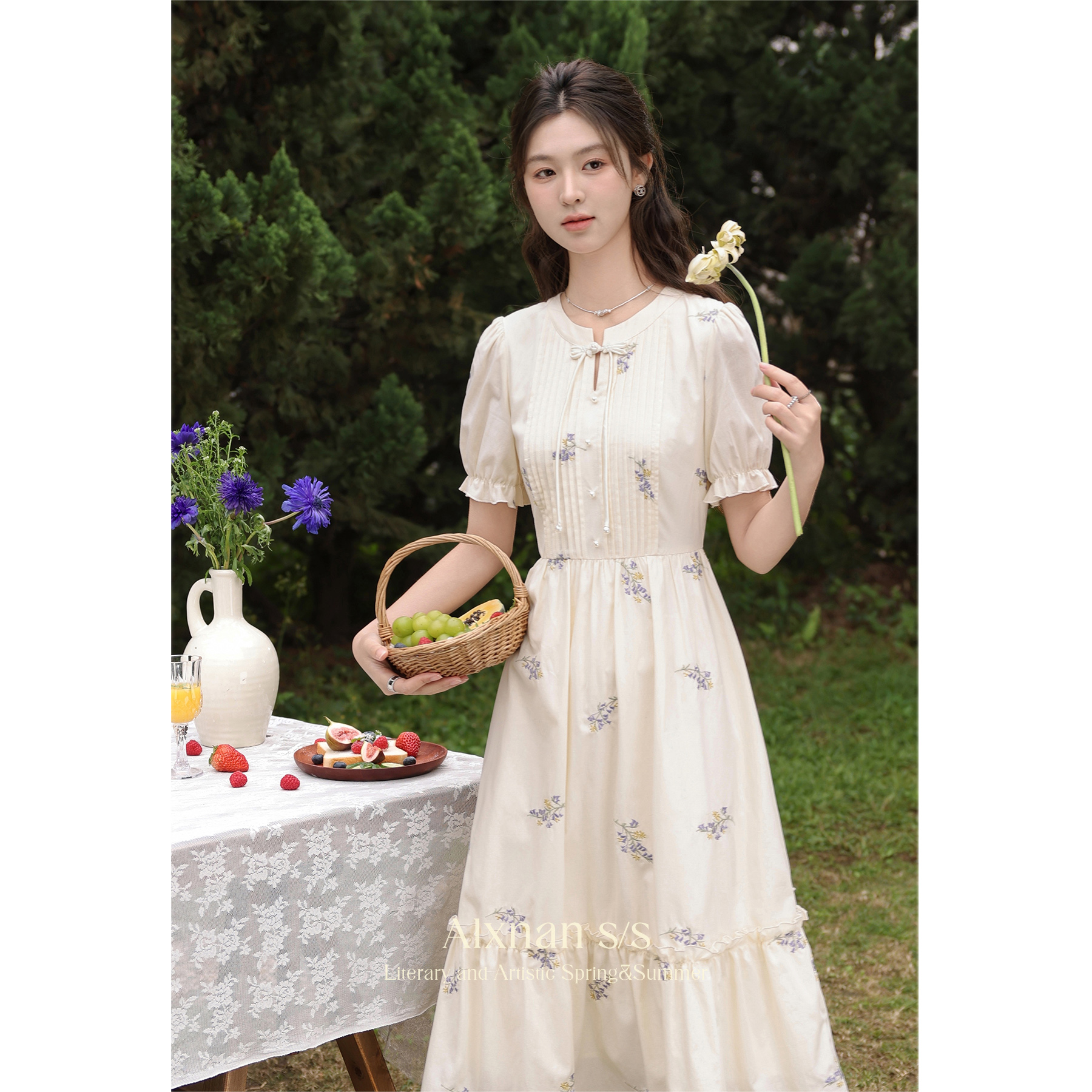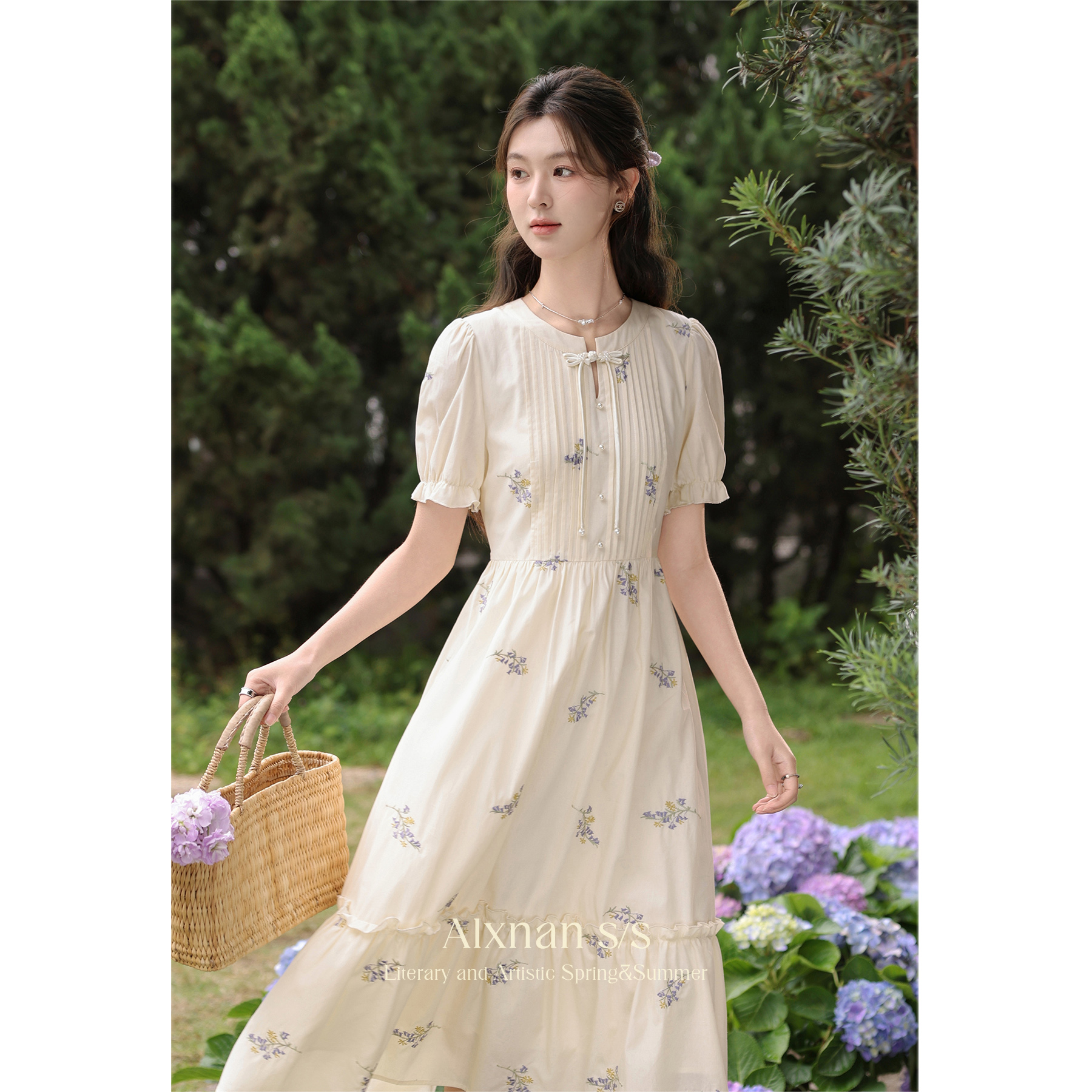 【65折秒杀】鹿向南《江南花坊》小众设计感连衣裙L35001 商品图0