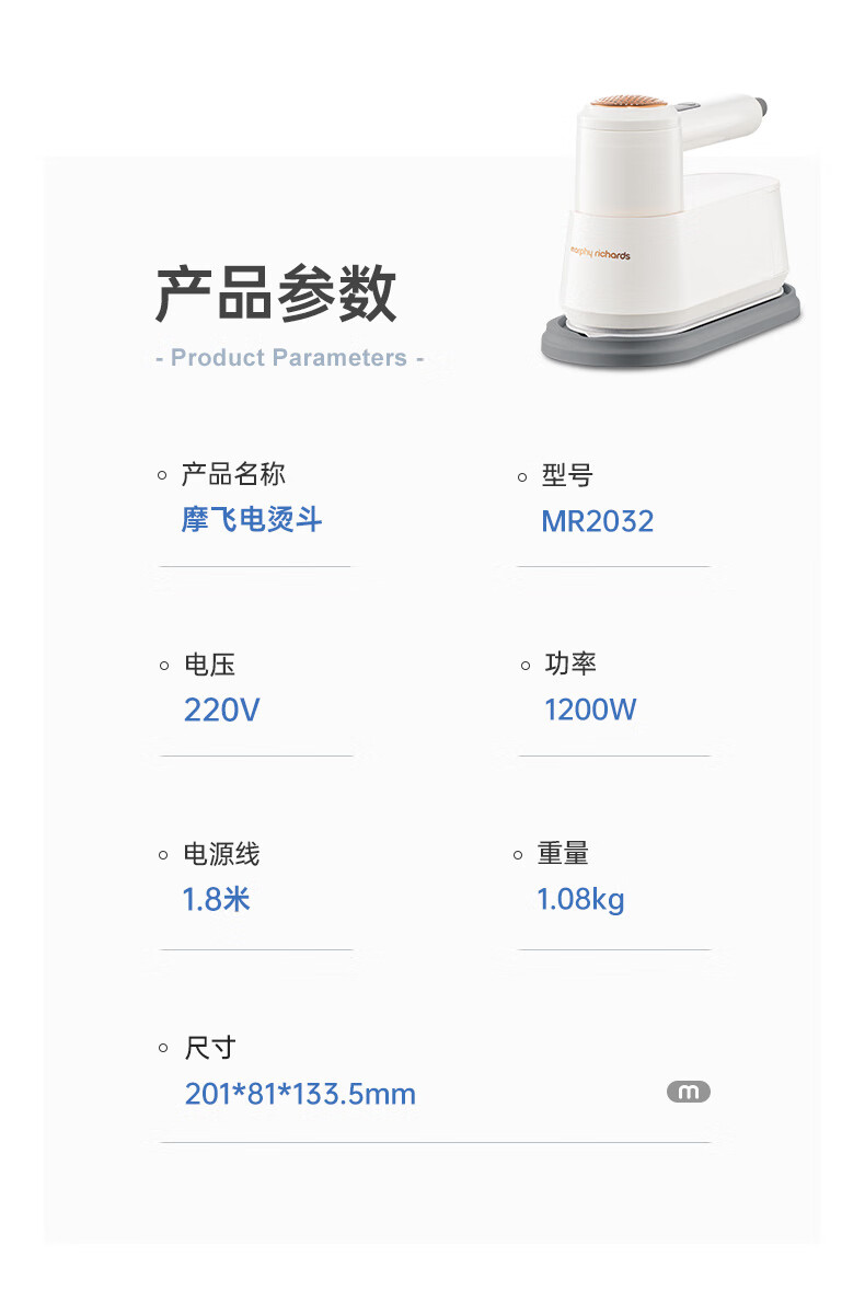 摩飞电器(Morphyrichards)挂烫机 手持挂烫机家用电熨斗 蒸汽熨烫机熨衣机旅游出差便携式MR2032白
