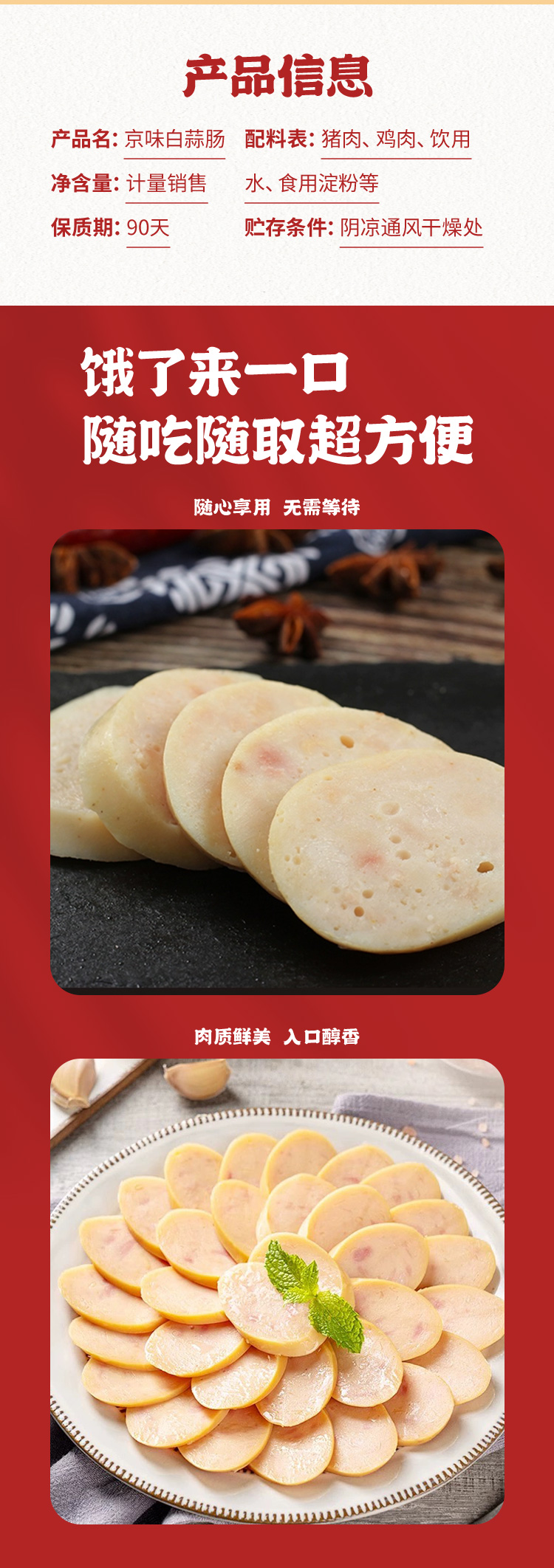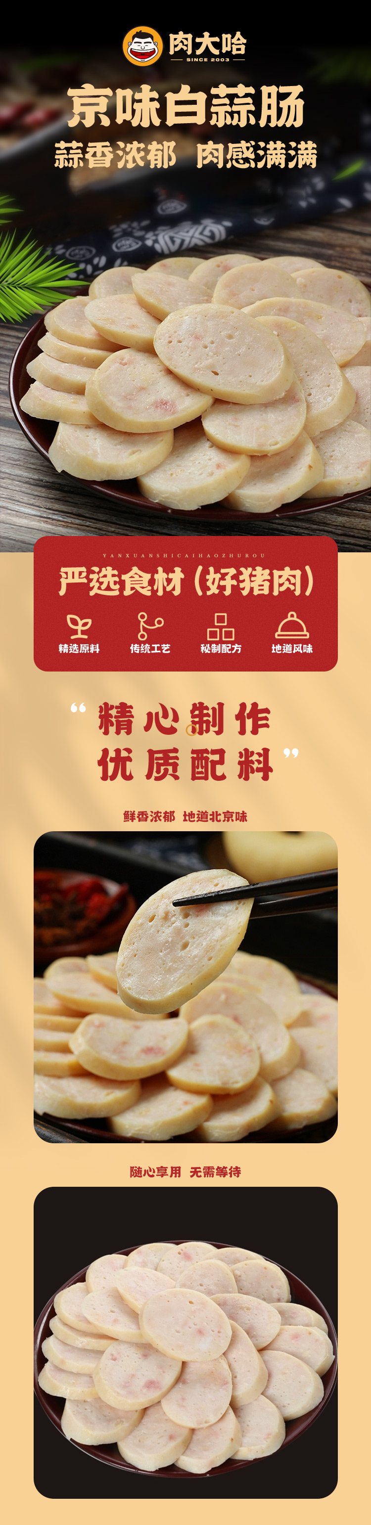 【99-50 199-100】肉大哈京味白蒜肠180克*8根开袋即食火腿蒜味熟食烤肠