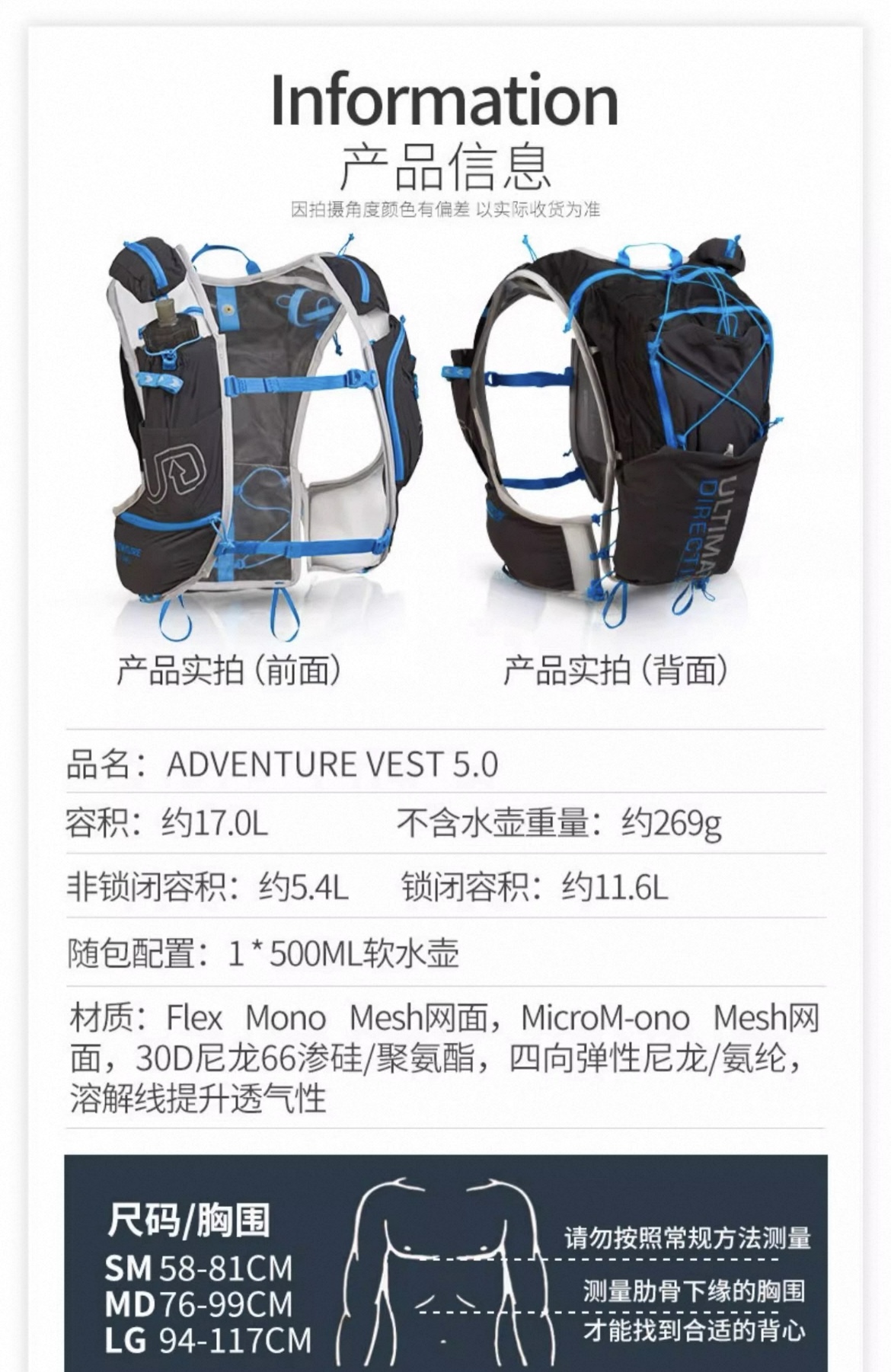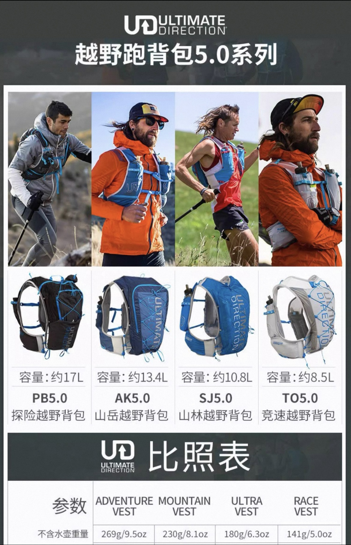 美国UD 男款 越野跑背包PB/AK/SJ/TO 5.0轻量水壶水袋背包
