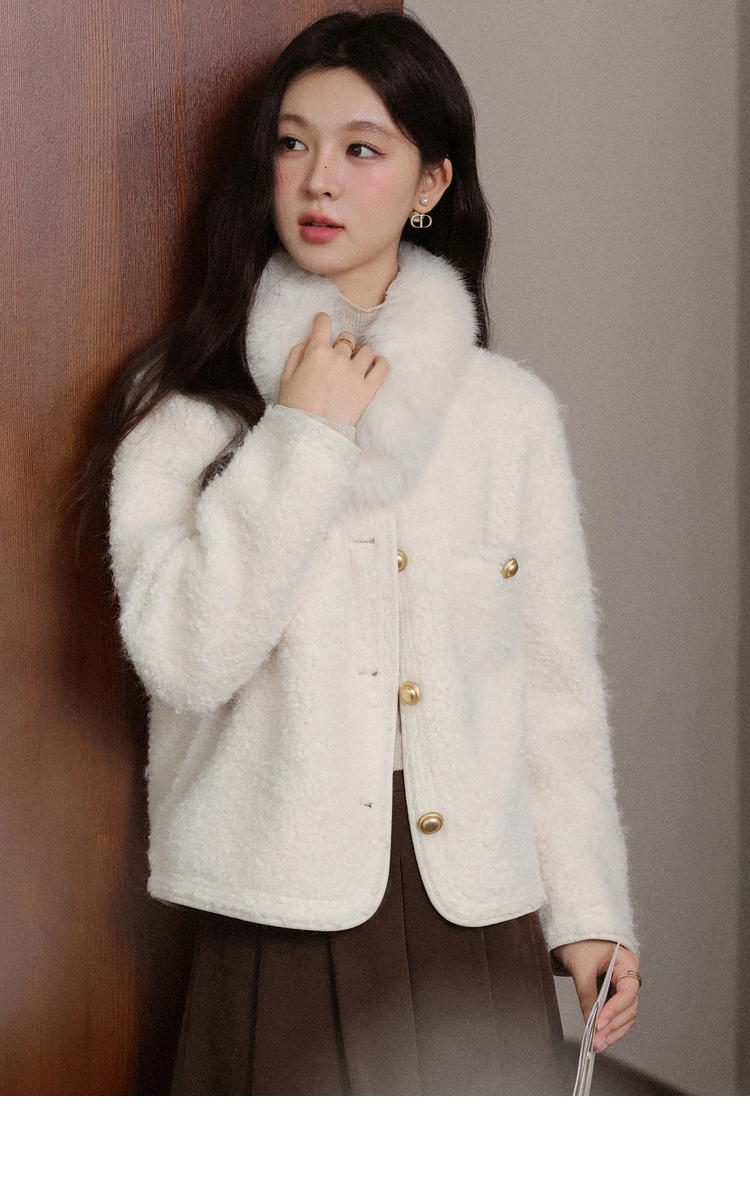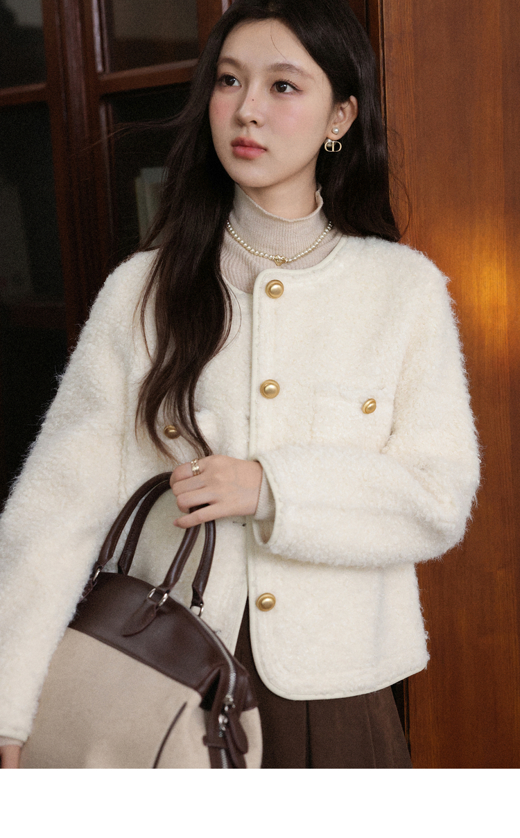【6折秒杀】鹿向南「残冬抄信」小香风米白色短外套秋冬季新款百搭保暖上衣女L58312