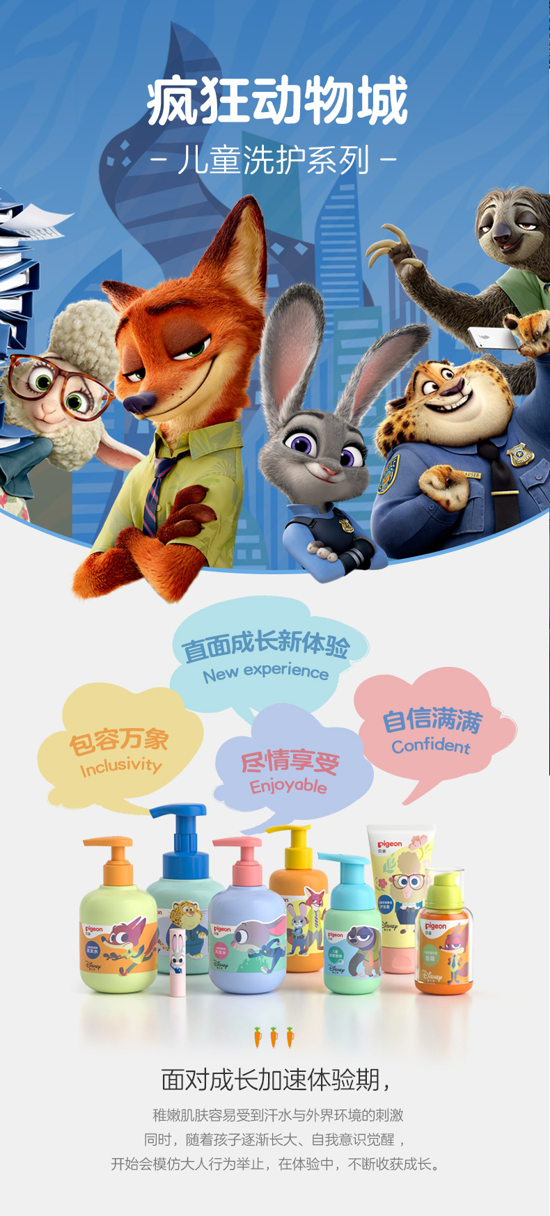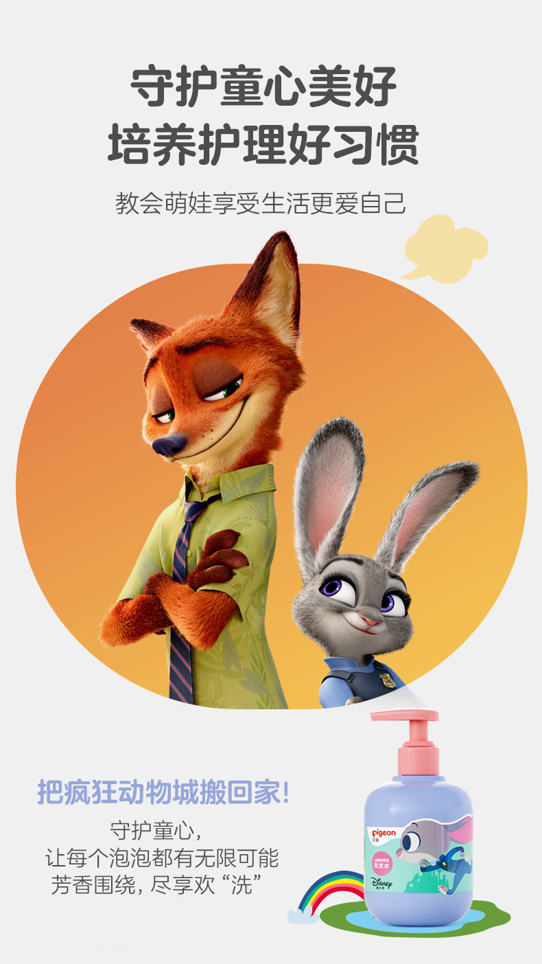 【官方自营】奚梦瑶推荐!PIGEON/贝亲迪士尼疯狂动物城3岁+洗护系列儿童可用洗发水/护发素/面霜/沐浴露/洁面/身体乳/护唇膏