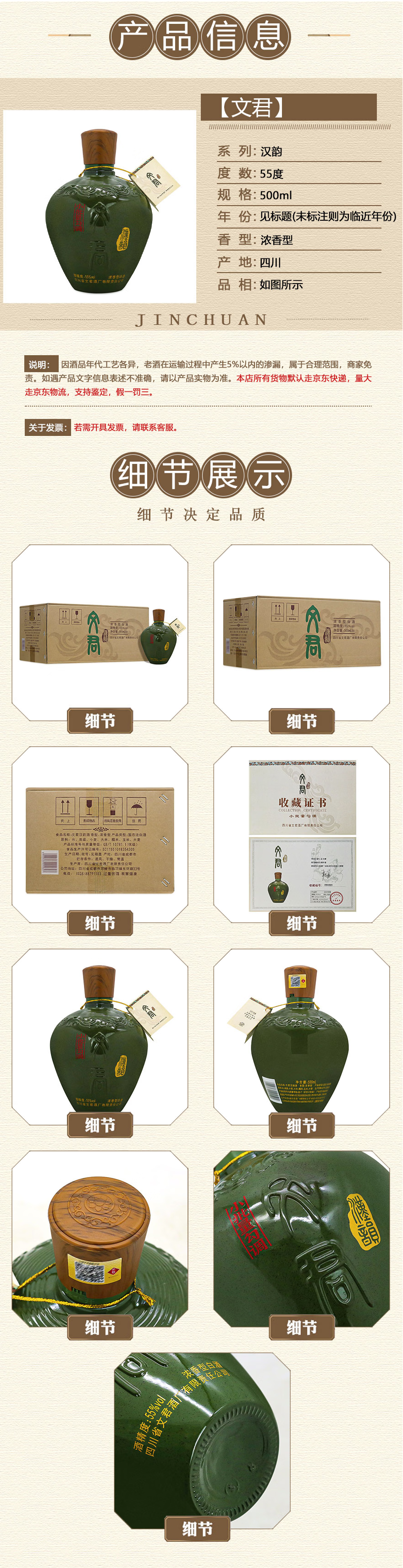 【高端光瓶】文君酒 汉韵 55度 浓香型白酒 500ml单瓶 500ml*6瓶 整箱