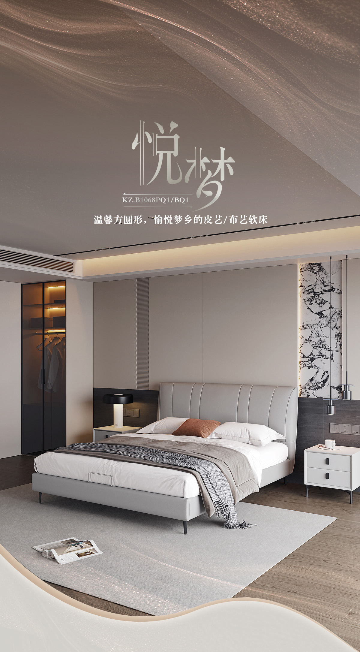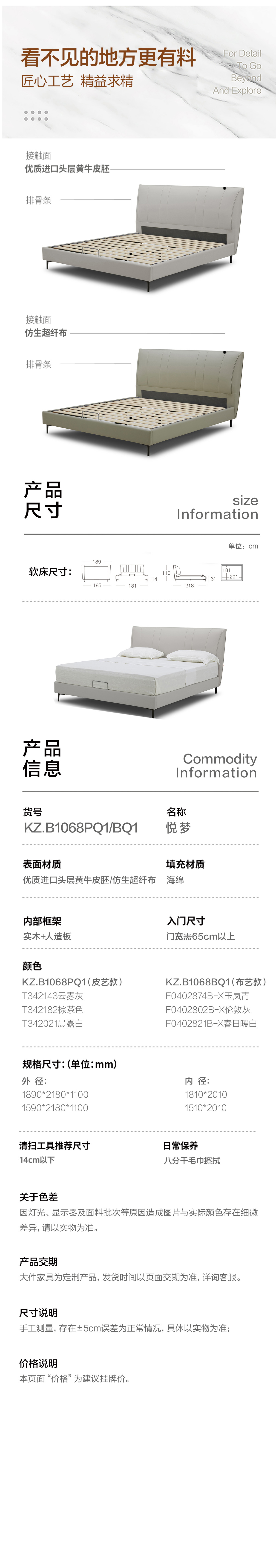 顾家家居整装 现代舒适 皮/布艺床 KZ.B1068PQ1/BQ1 悦梦