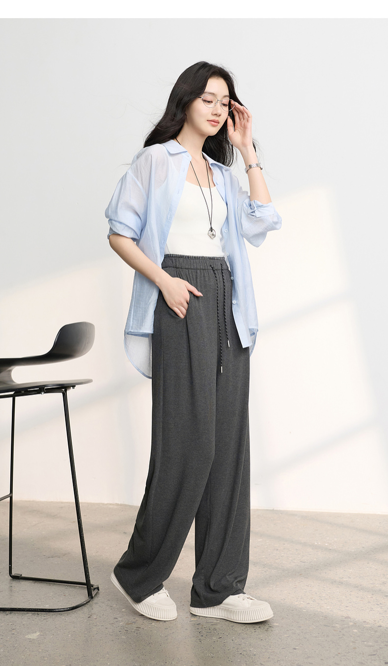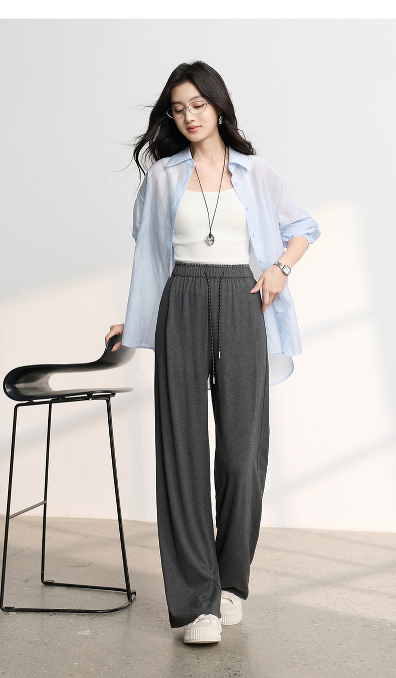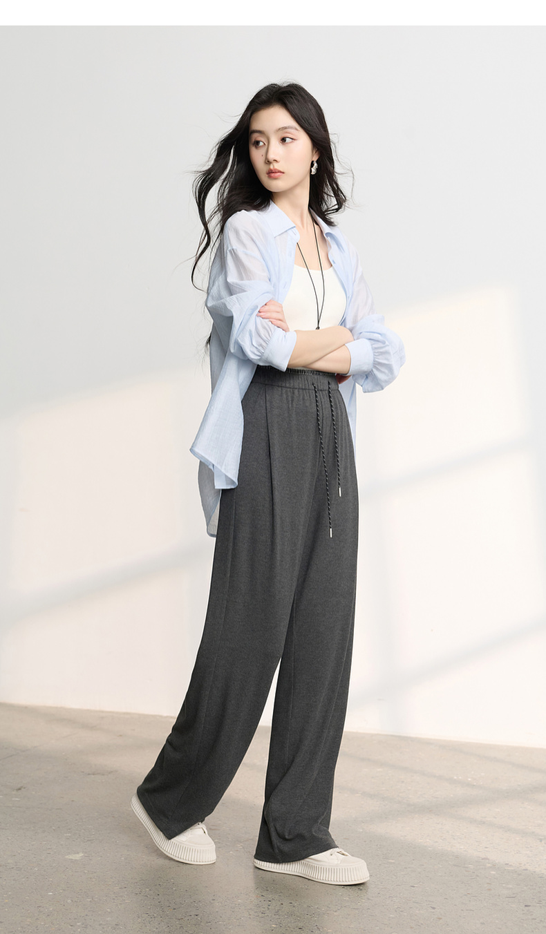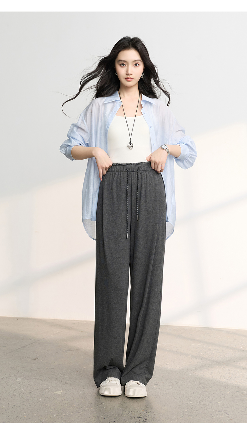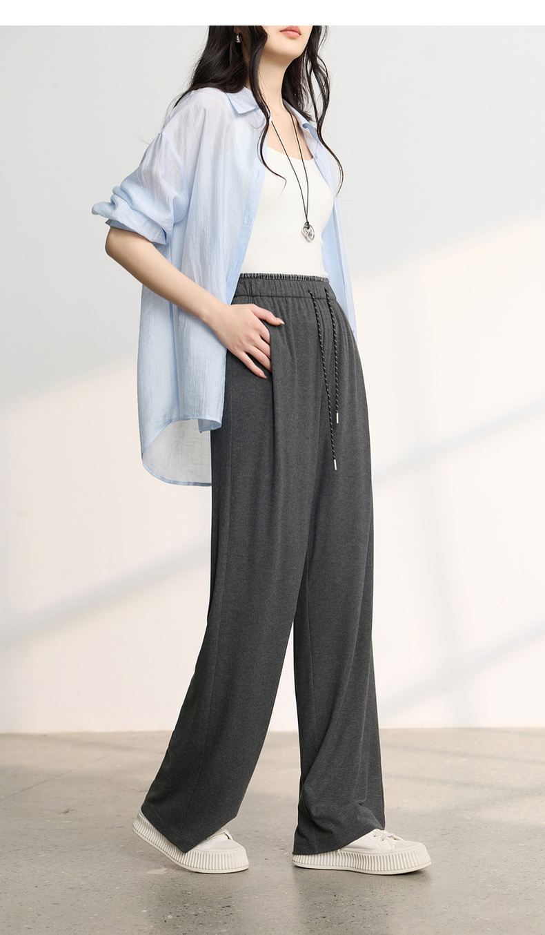 三彩2026春季新款糯米条垂垂裤休闲裤长裤宽松高腰直筒裤M