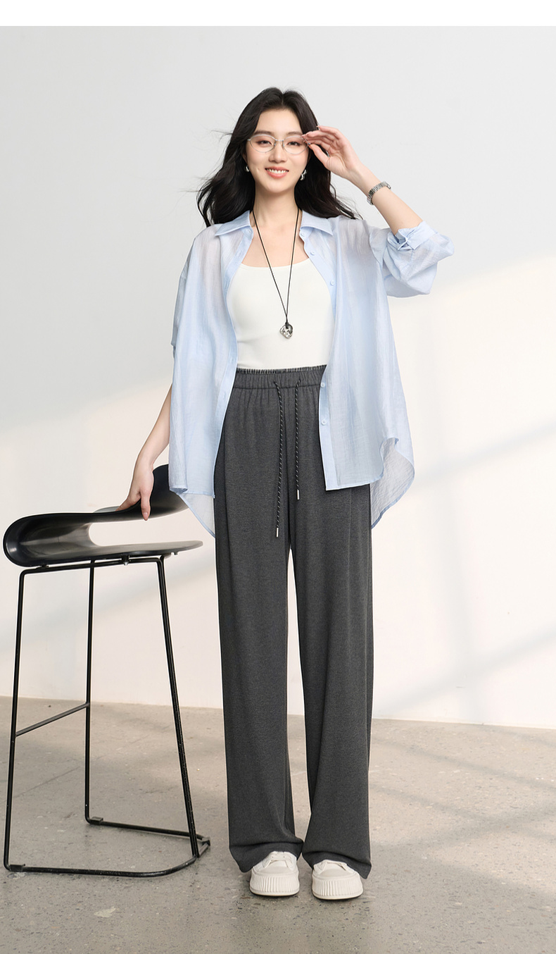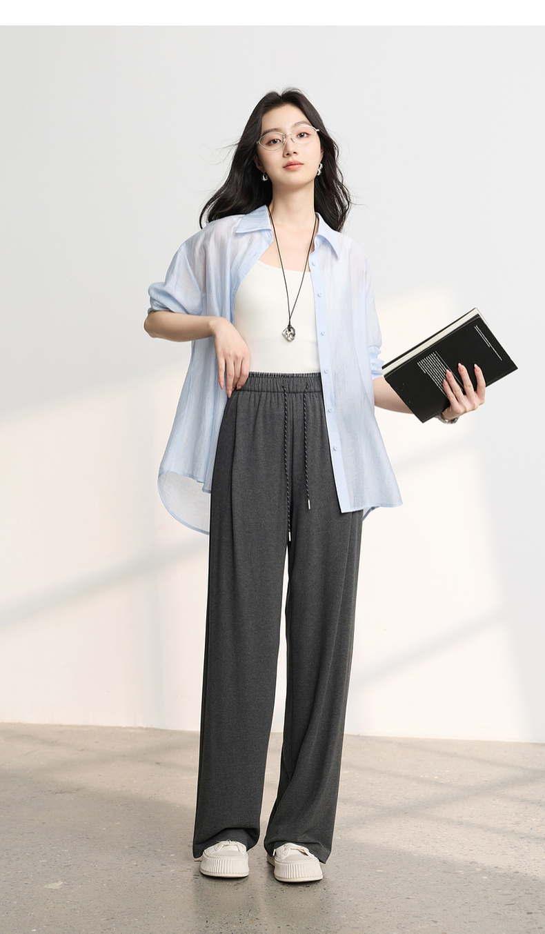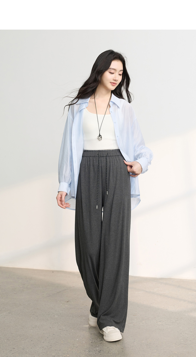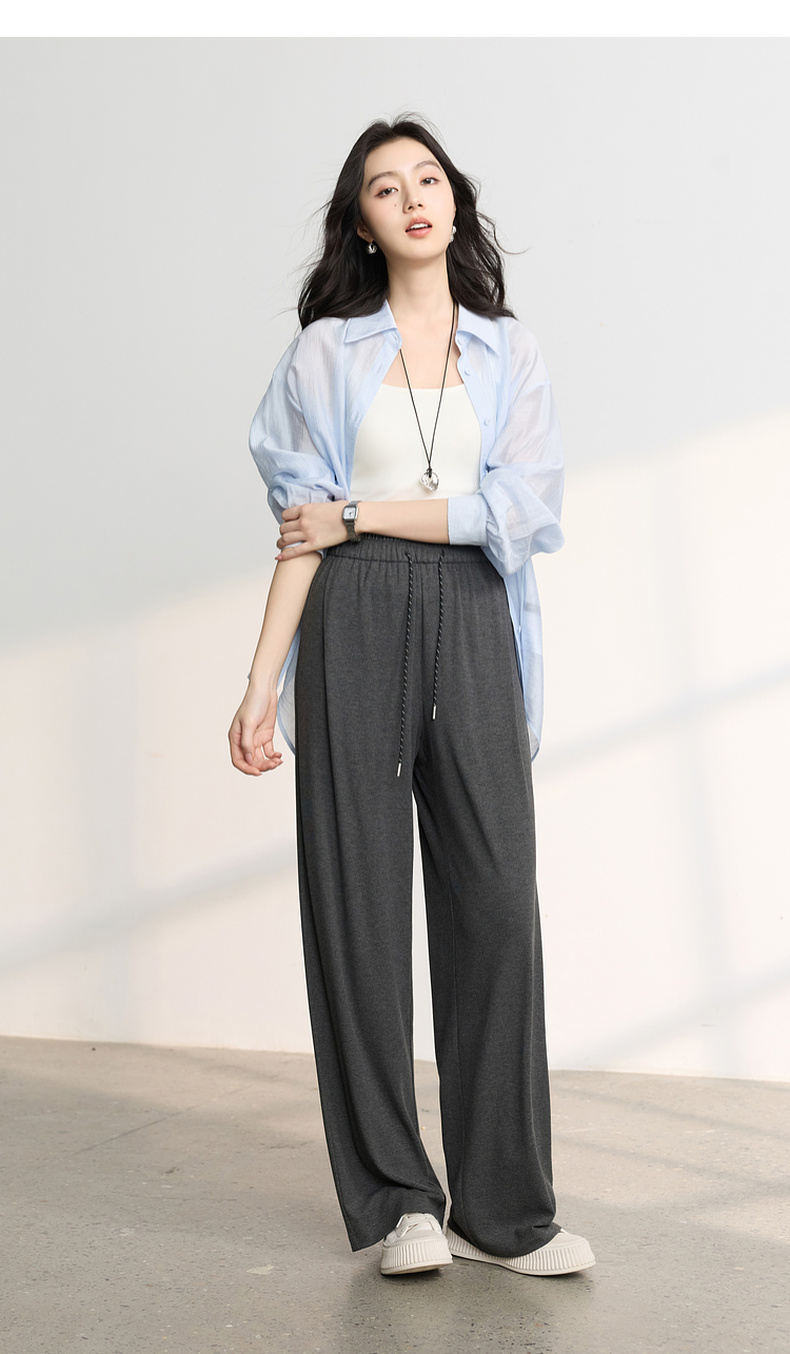 三彩2026春季新款糯米条垂垂裤休闲裤长裤宽松高腰直筒裤M
