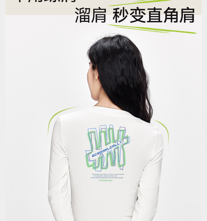 「棉的美学」打底衫女印花款显瘦修身正肩长袖T恤内搭辣妹上衣