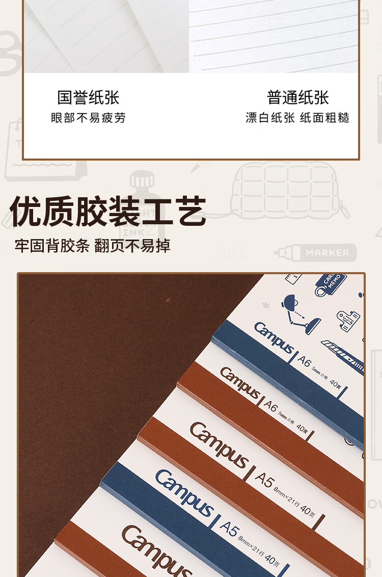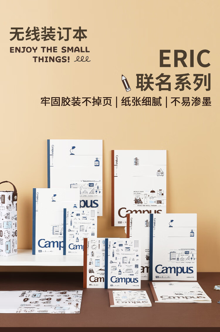国誉eric Campus无线装订本(2色混装) B5/40页 8mm点线 4本/封 WSG-NB8MB540