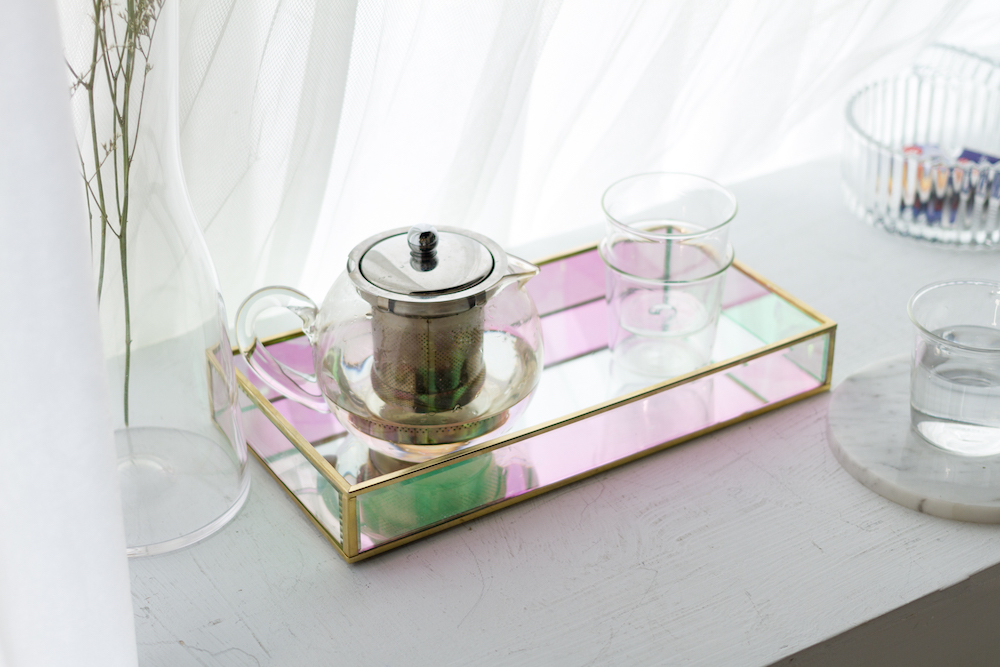 目喜生活新品“极光玻璃托盘”新尺寸,以细腻的手工制作,保有原本的亮丽色泽与坚实厚度