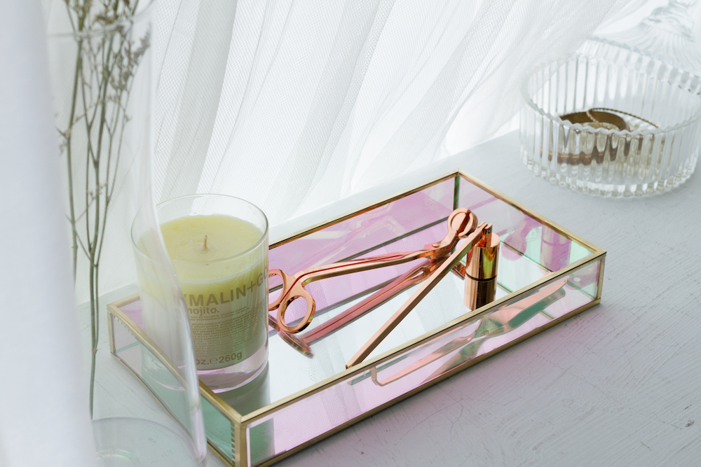 托盘可以用在香氛蜡烛的摆放上,也可以是玄关置放最常用到的物品,百搭使用!