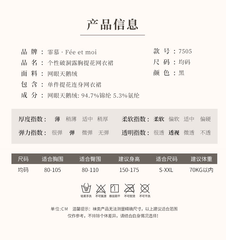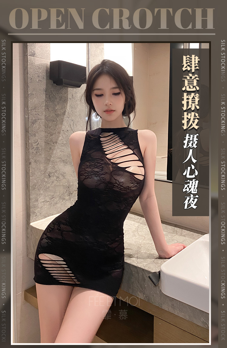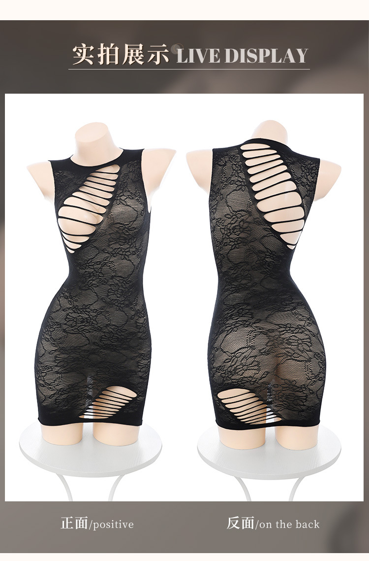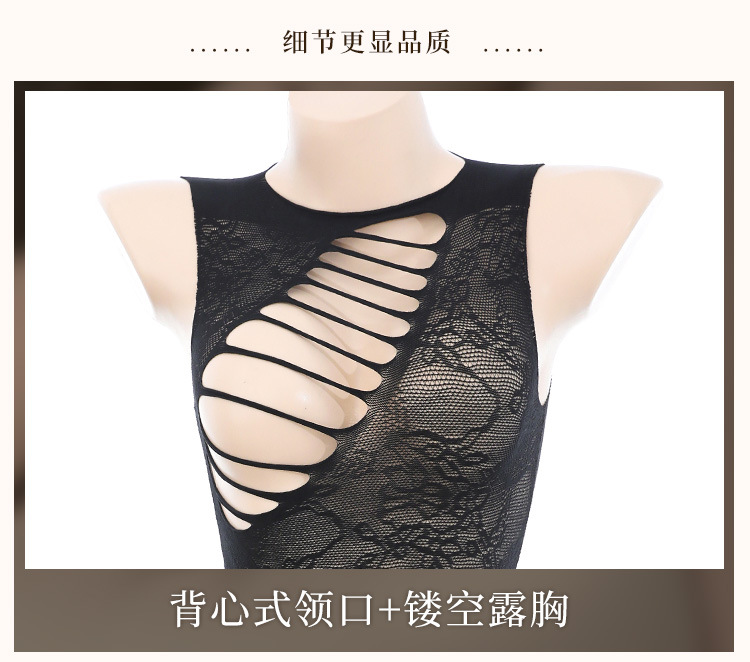 【霏慕】连身袜7505 个性破洞露胸提花网衣裙7505情趣内衣性感镂空透视包臀