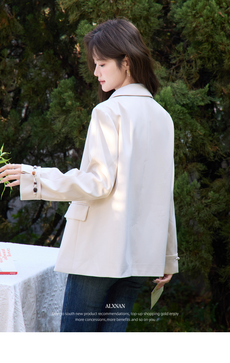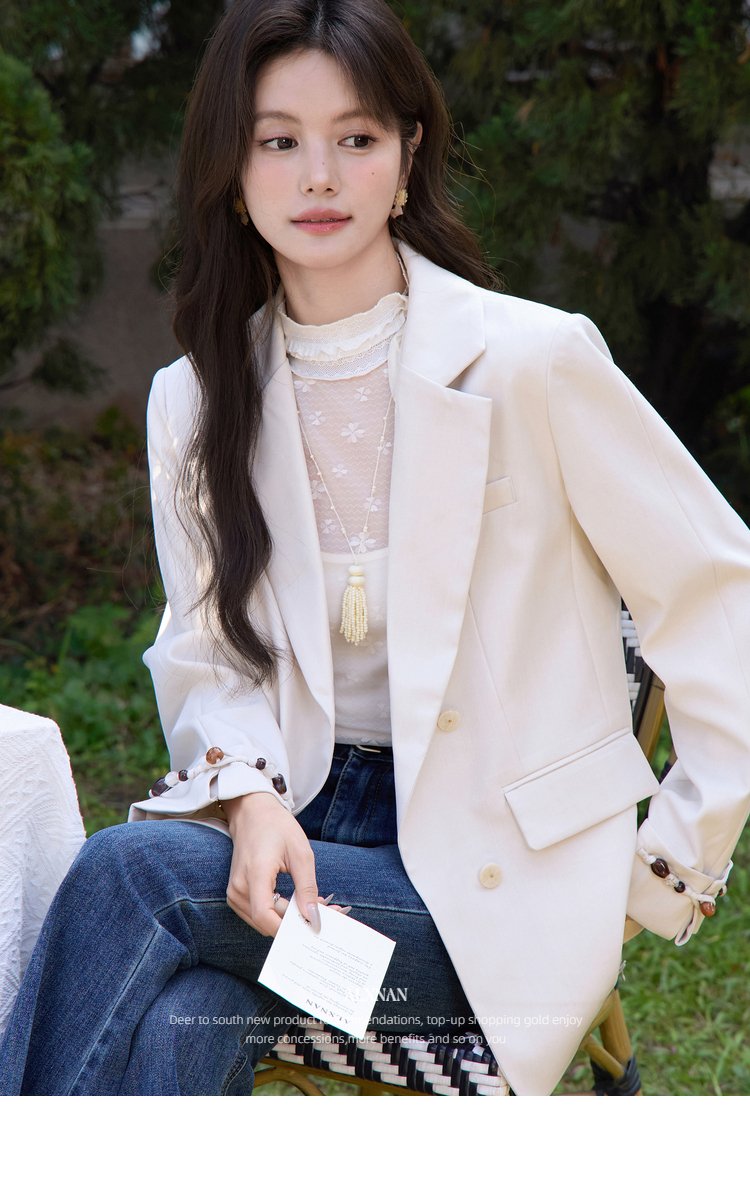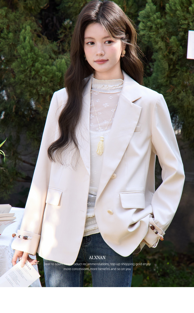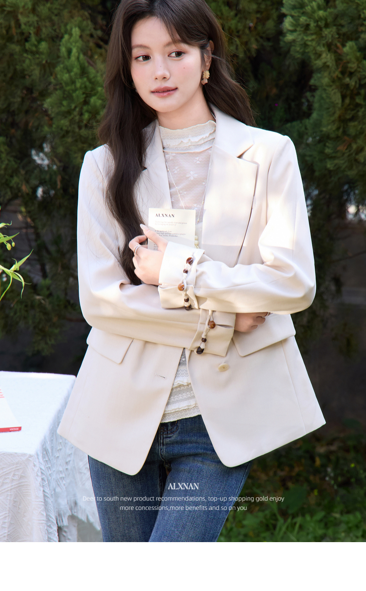 鹿向南「轻语花间」杏色小西装外套女春季新款巨好看宽松正装上衣