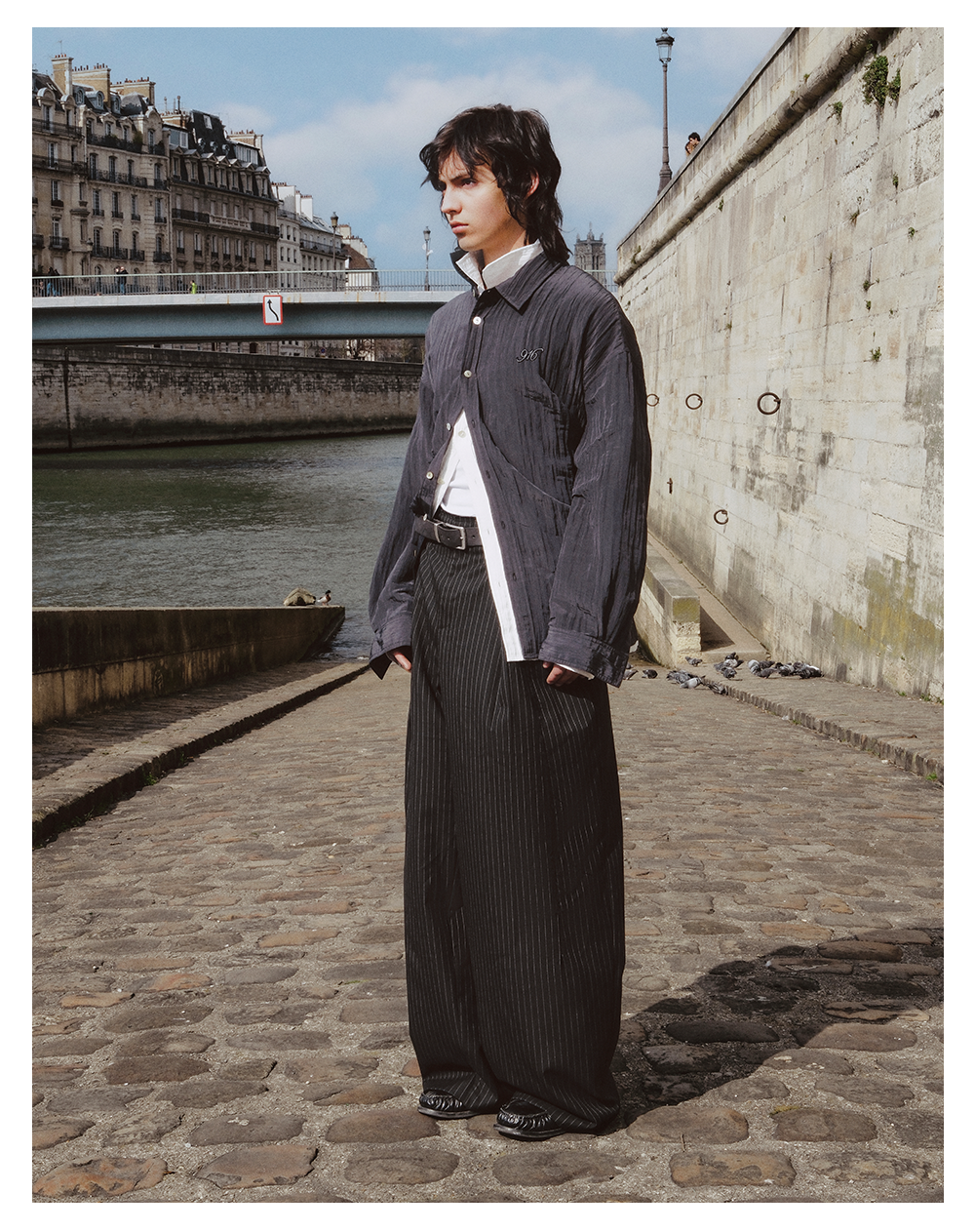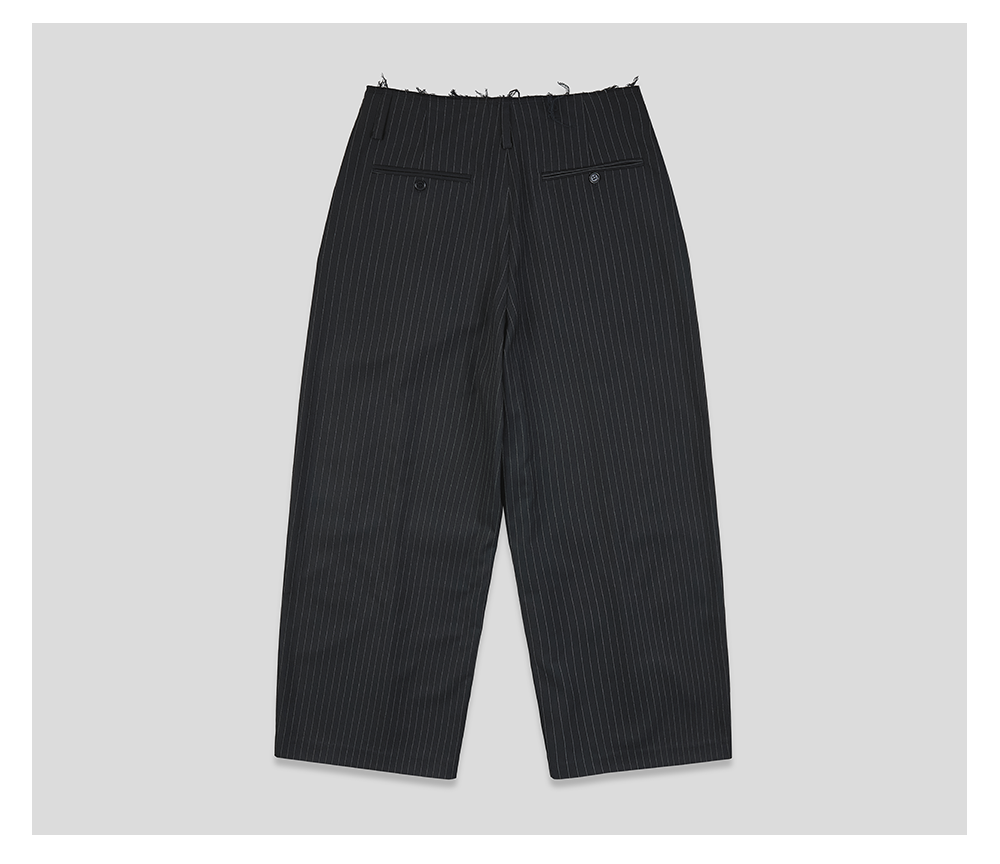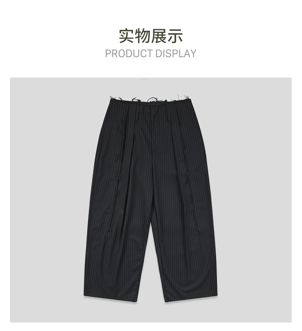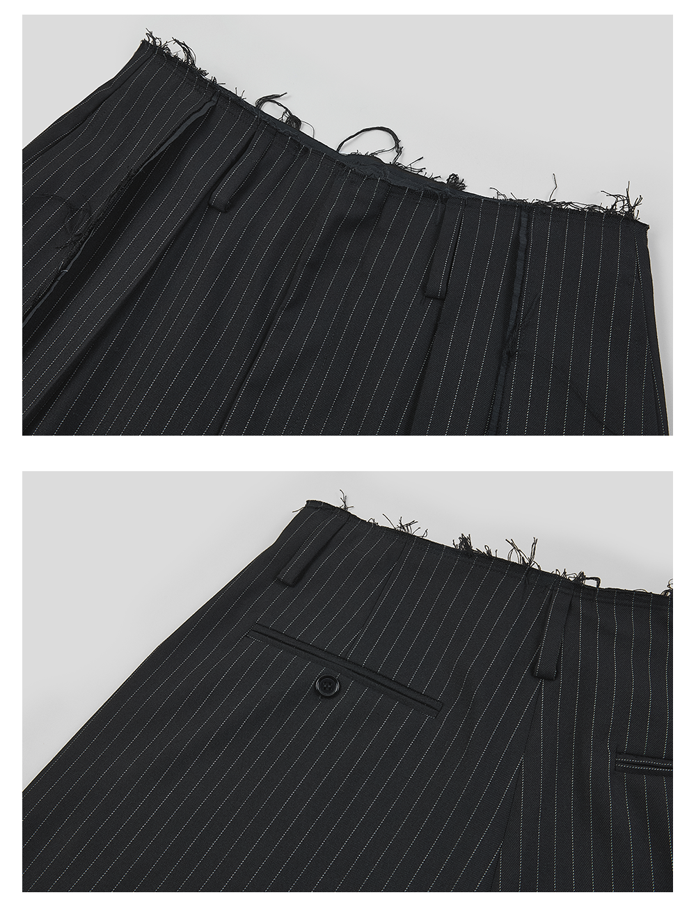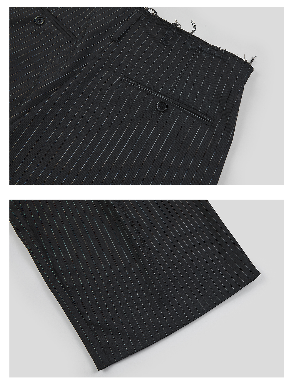 GOODBAI 916 无腰带毛边条纹打褶直筒西裤