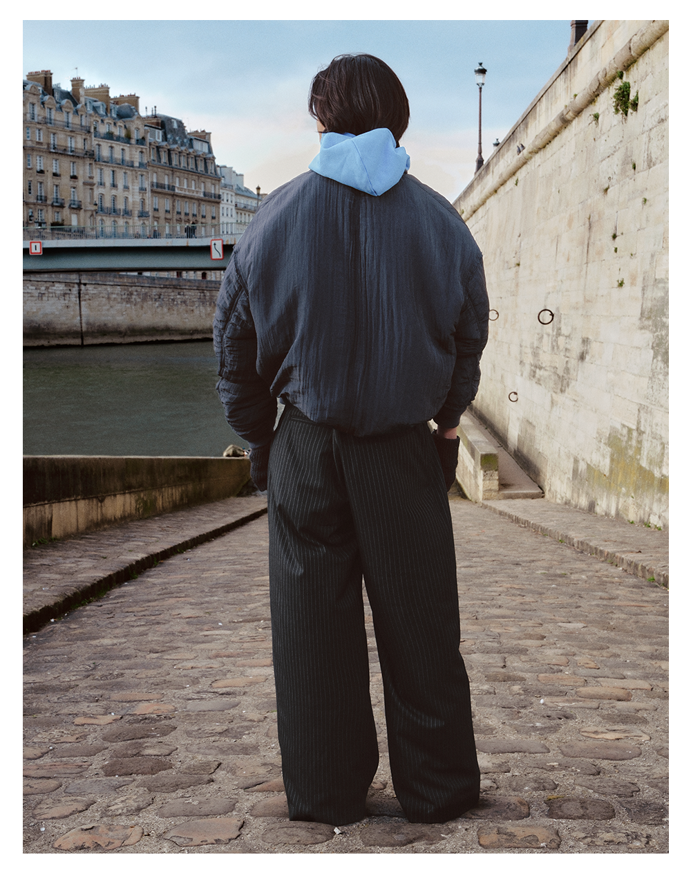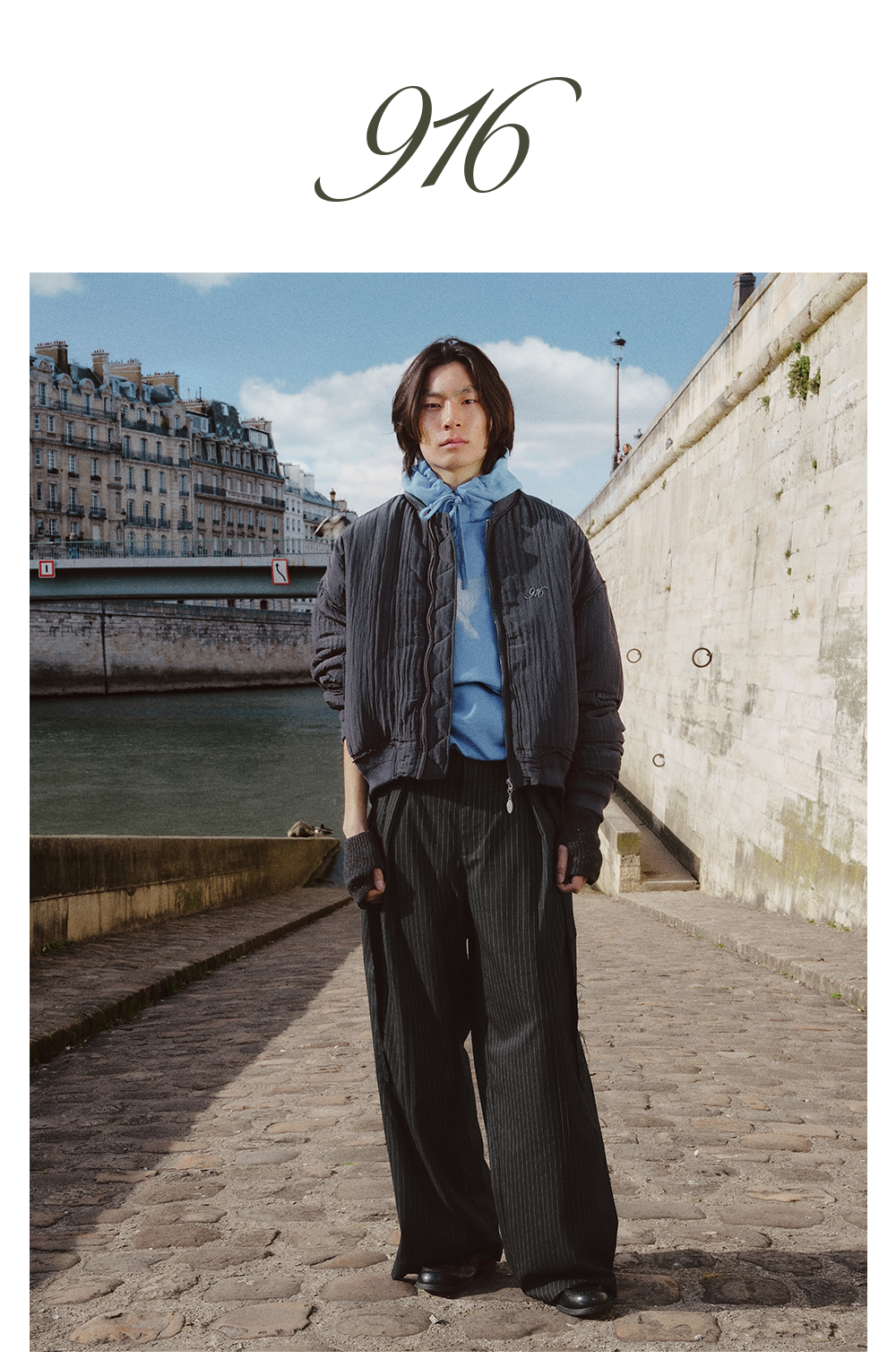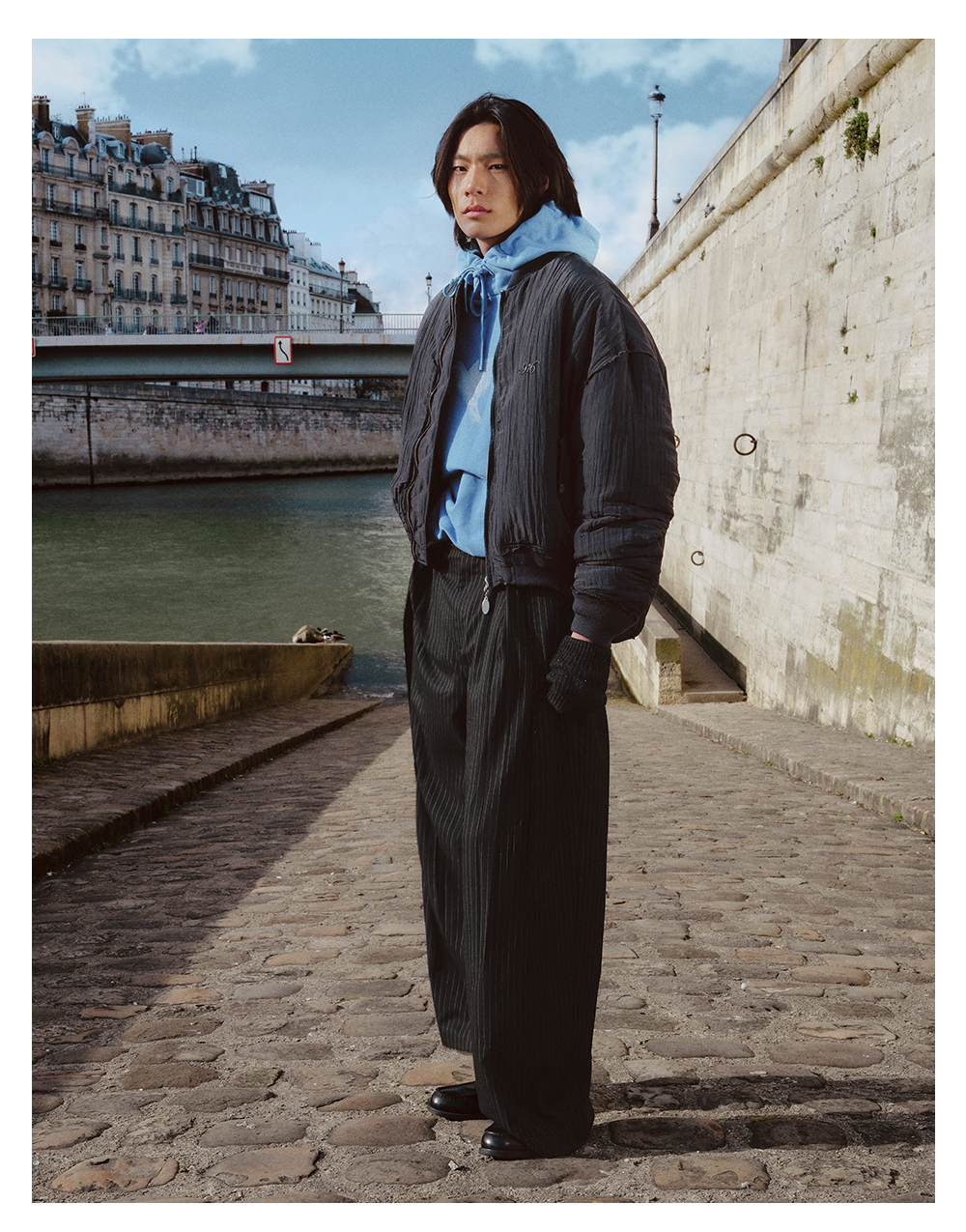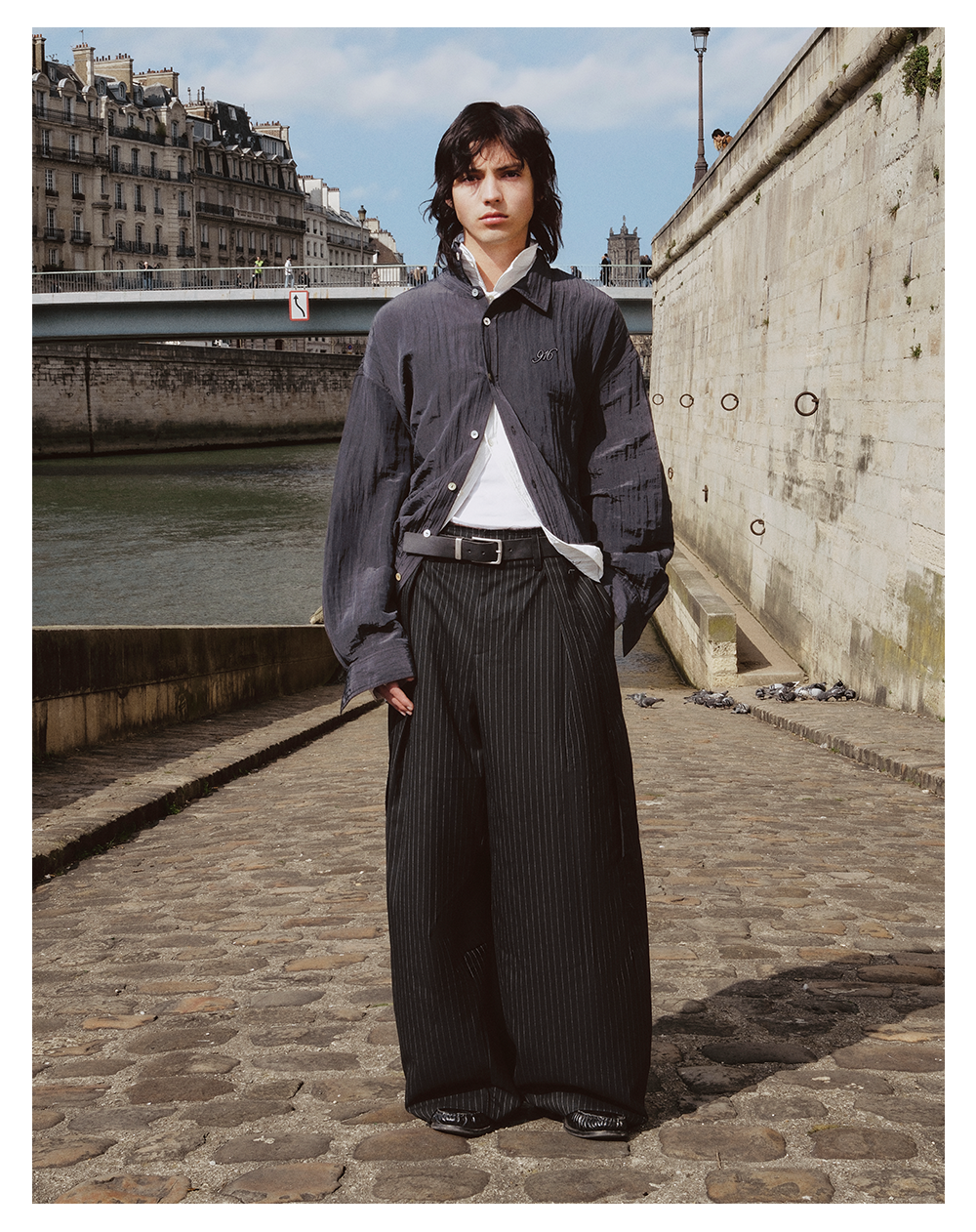 GOODBAI 916 无腰带毛边条纹打褶直筒西裤
