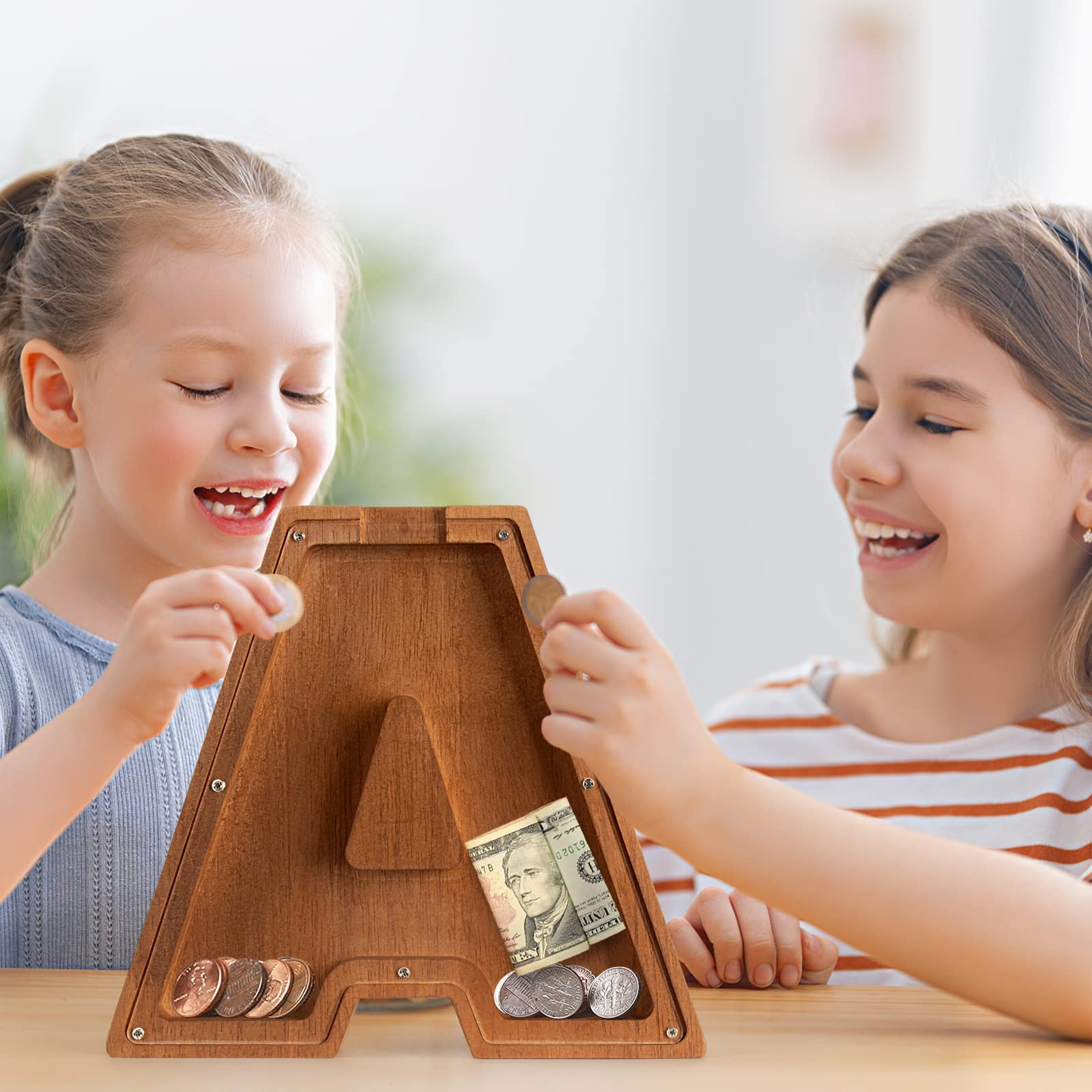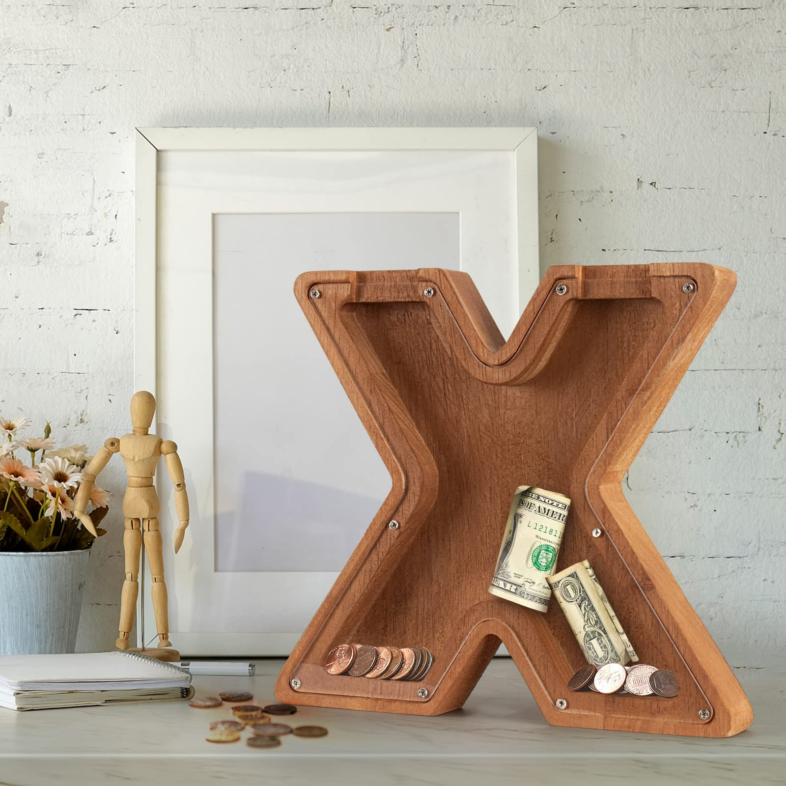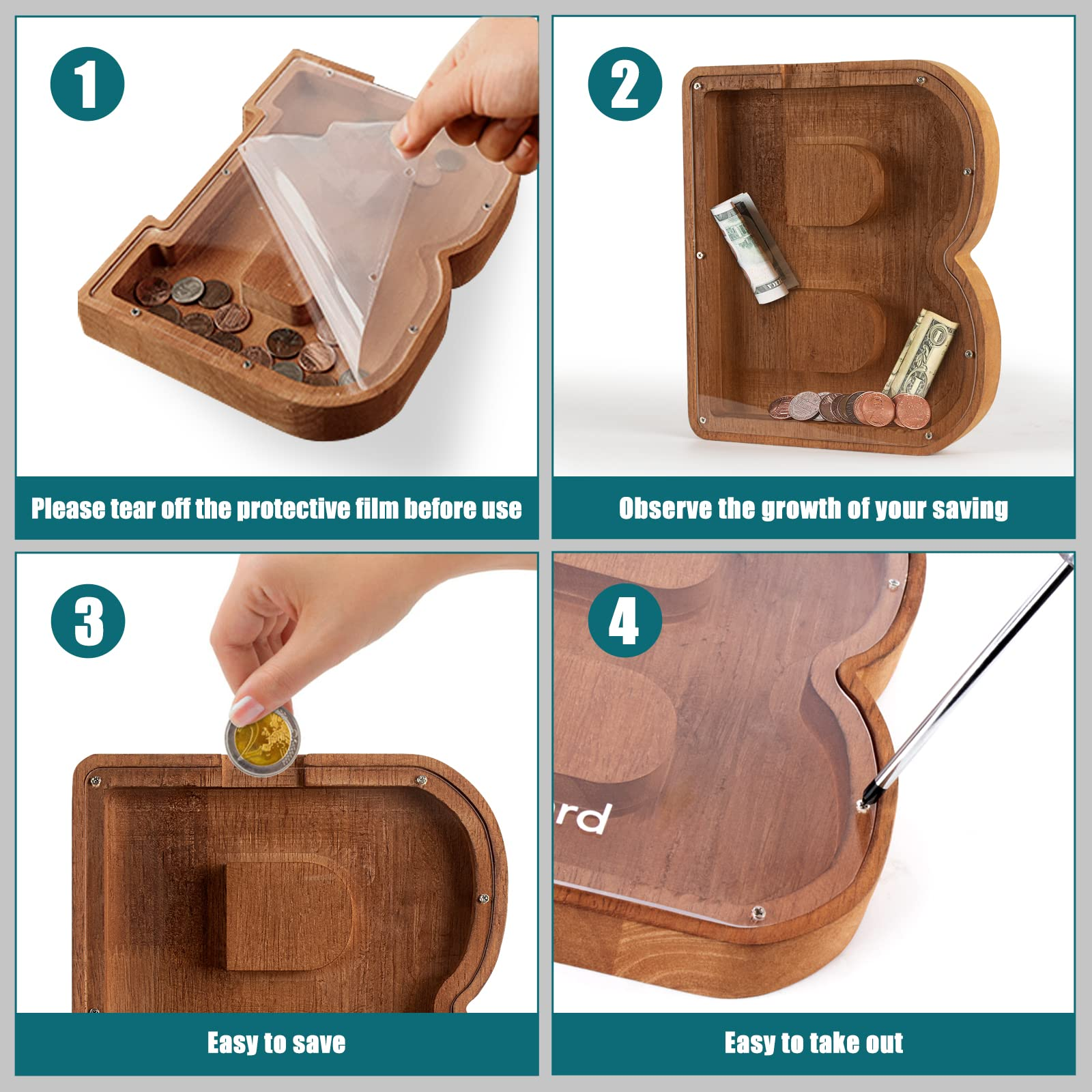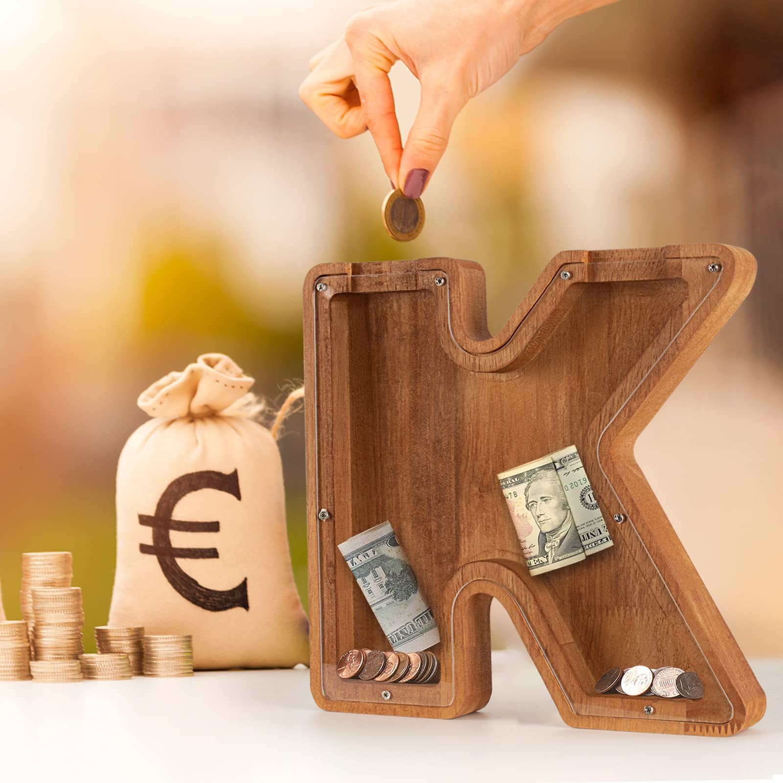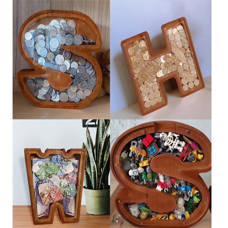 深色木质字母储蓄罐 透明亚克力硬币存储盒 创意家居摆件