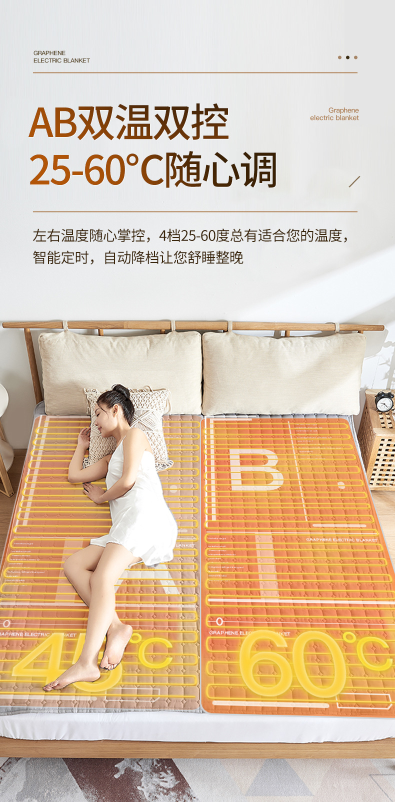 分位控区电热毯双人水暖毯水循环加热垫双人双控