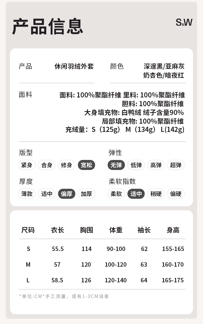 【sw速惟】连帽白鸭绒加厚保暖户外防风羽绒外套1947B