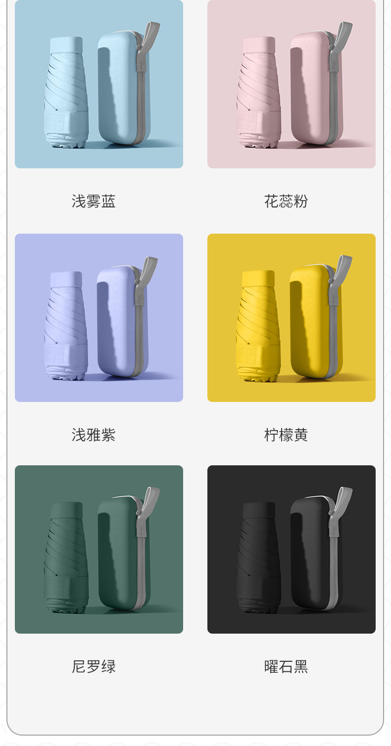 花觉六折随身胶囊伞 小巧便携 防晒防紫外线 晴雨两用9色可选