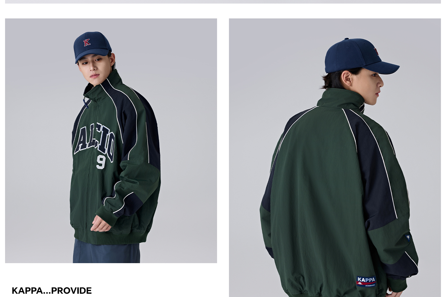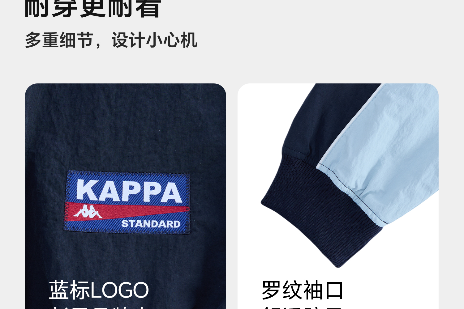 Kappa卡帕背靠背新款运动外套男复古休闲开衫防泼水夹克立领上衣K0F12JJ19