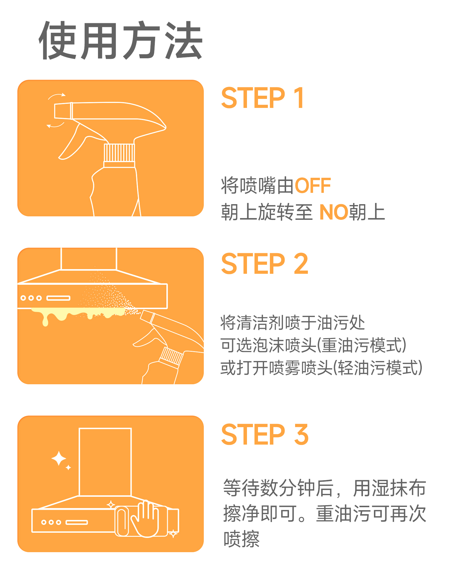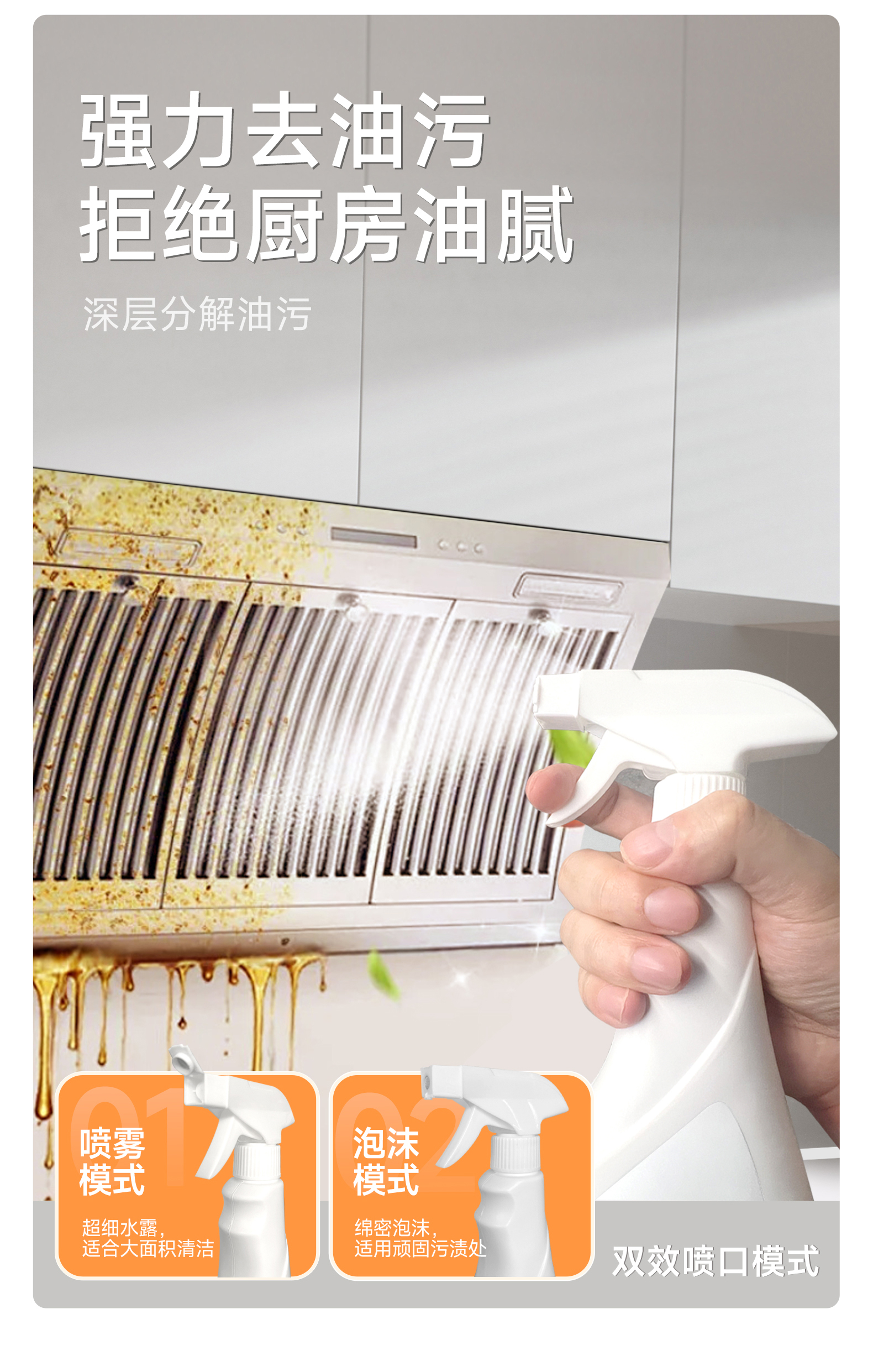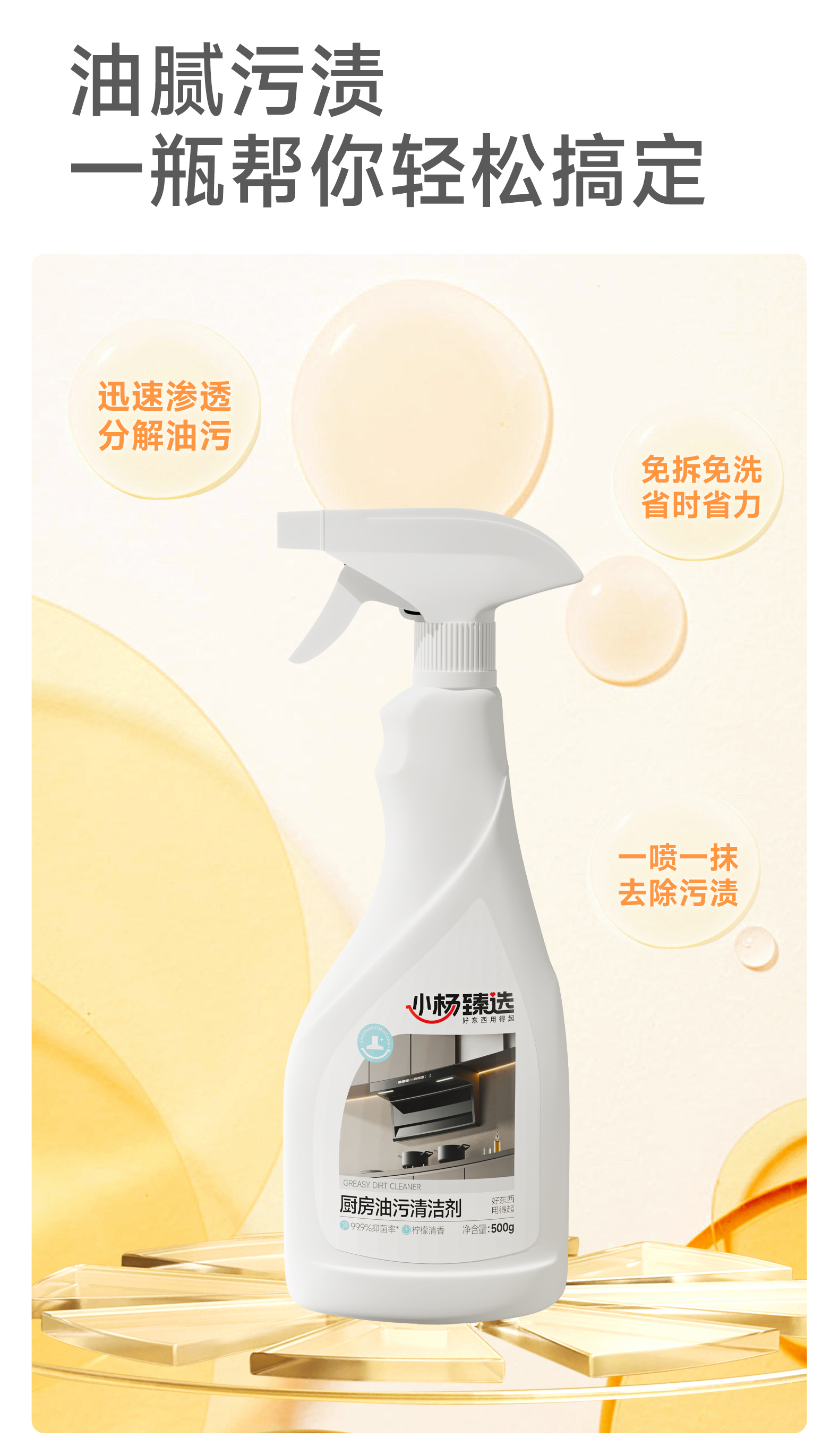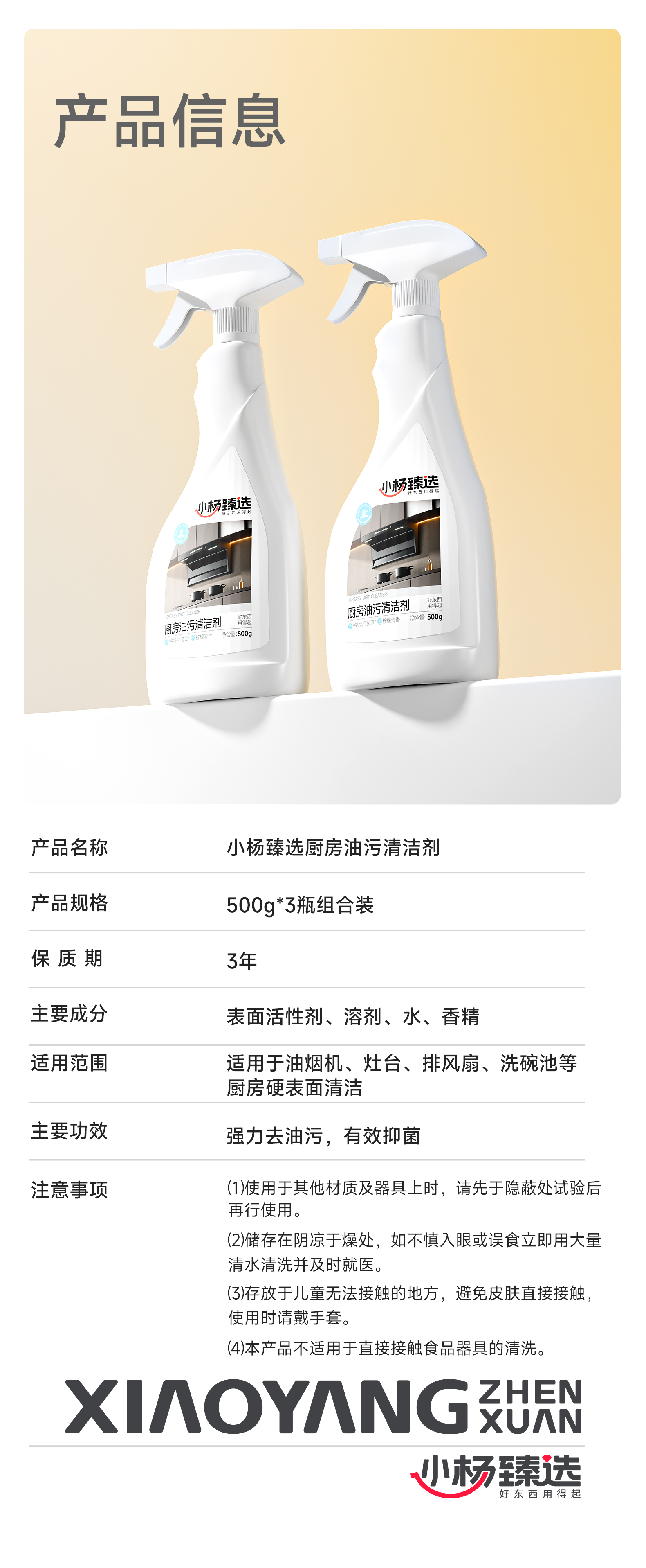 【小杨臻选】油污净厨房重油污清洁剂喷雾去油去污抑菌家用500g*3瓶