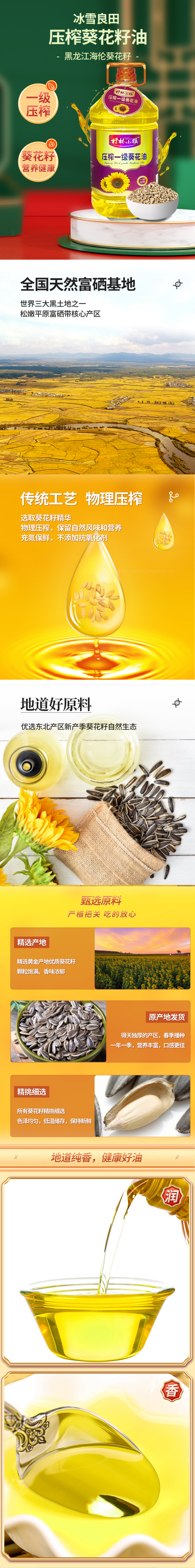 【葵花籽油】 一级葵花籽油5L 压榨葵花籽油 东北葵花油