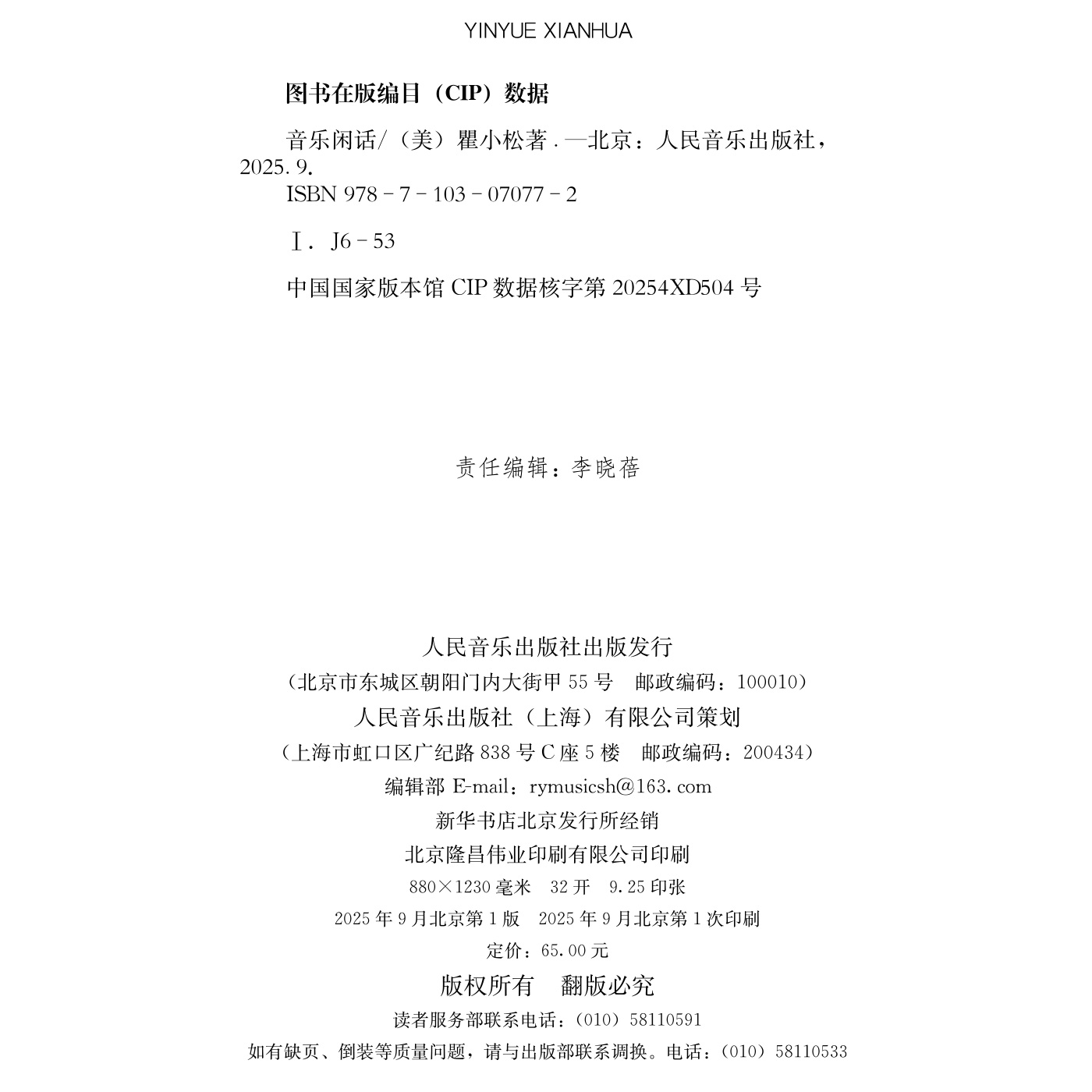人民音乐出版社是我国最具规模与影响力的国家级音乐专业出版机构,在国内外具有重要学术地位。成立69年来,始终以“用音乐记录历史、用出版记录音乐”为企业使命,积累了丰富的音乐专业类图书资源。