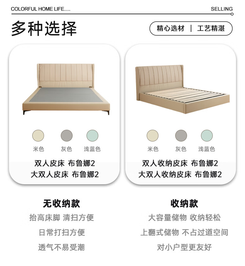 【家具】 现代简约卧室床牛皮软包储物收纳床 布鲁娜2