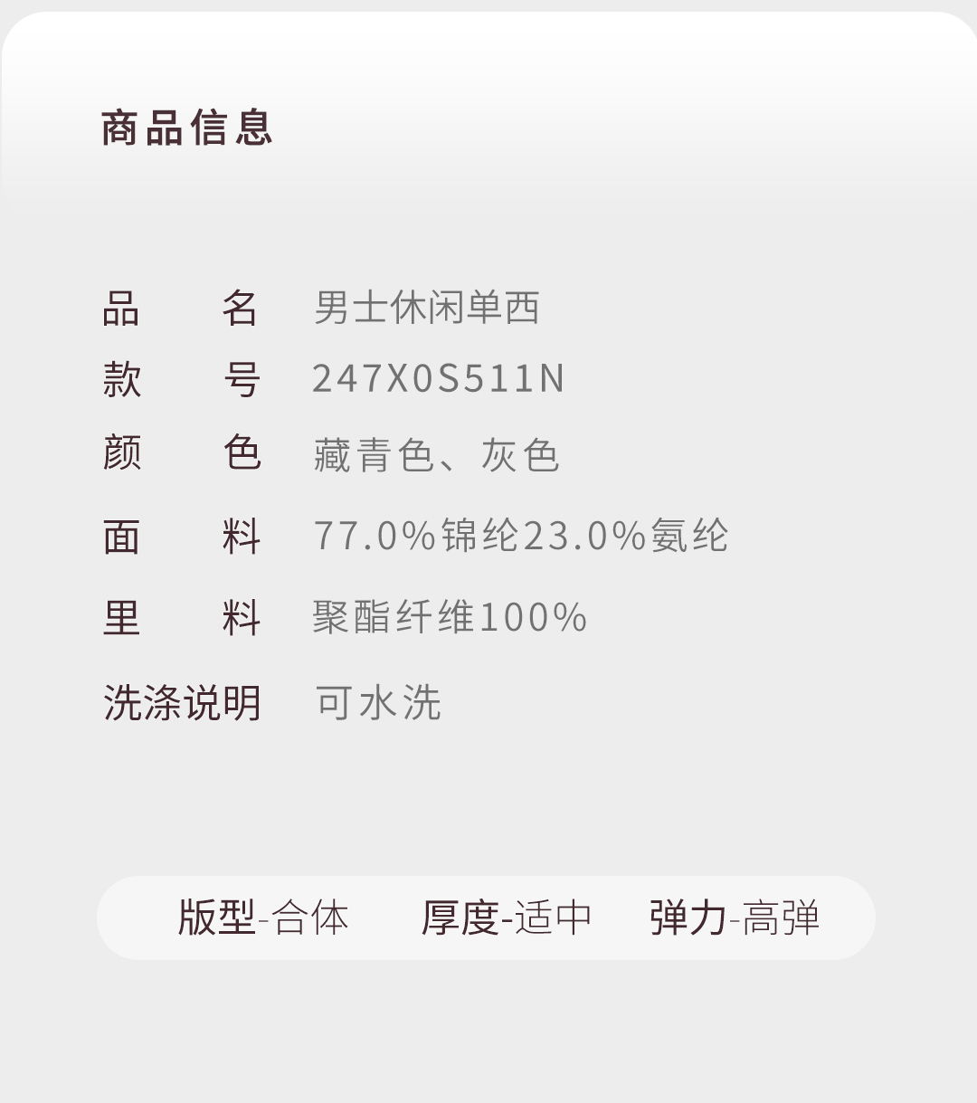 【新锐一号】可机洗树皮纹抗皱透气春夏休闲单西251B0S513N