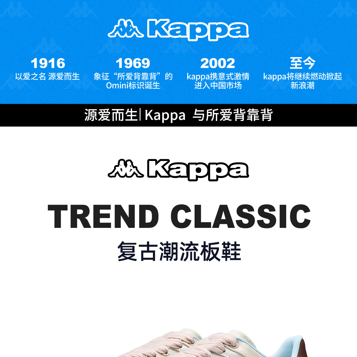 Kappa卡帕背靠背TIFO德训鞋女鞋夏季新款透气板鞋复古休闲运动鞋K0F65CC70