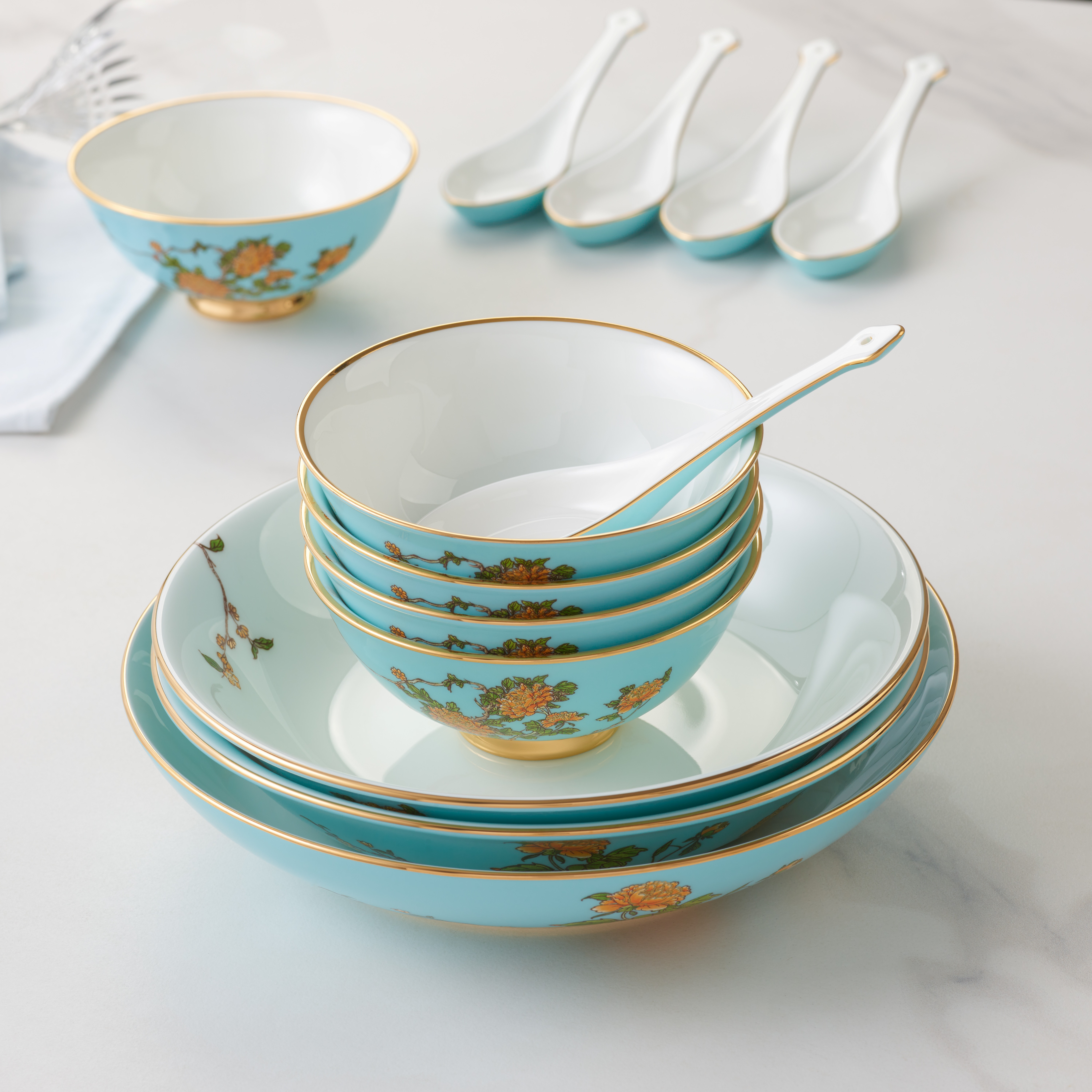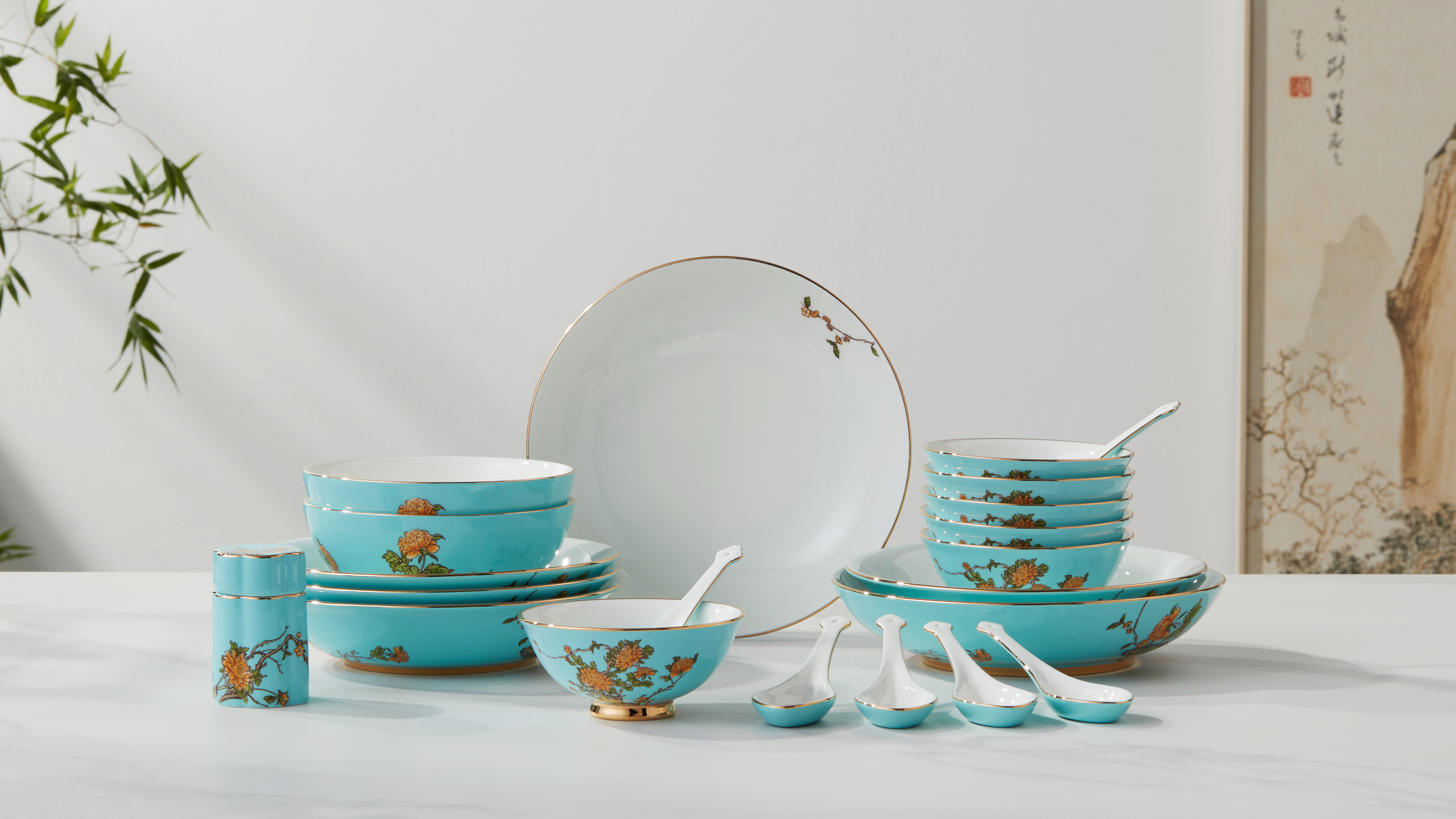 国瓷永丰源 夫人瓷·西湖蓝22头中餐具