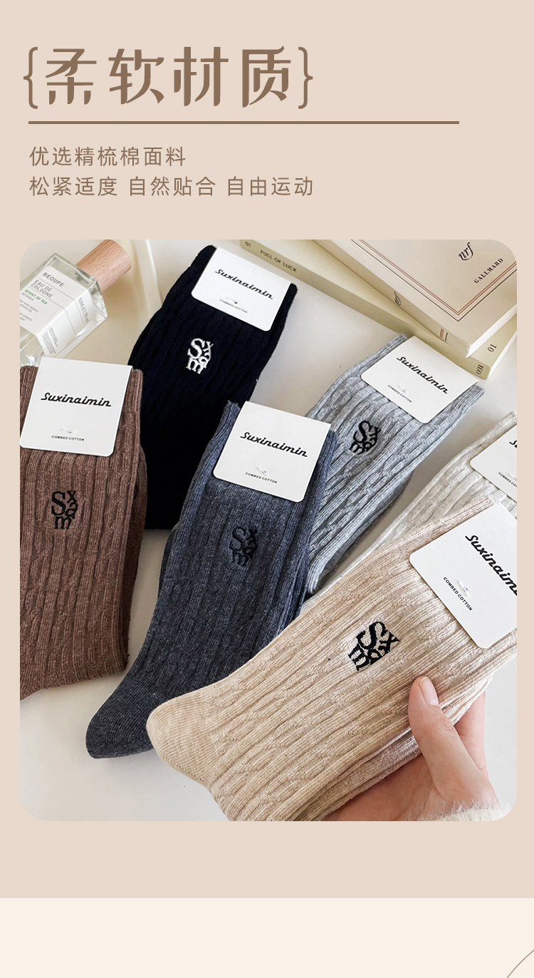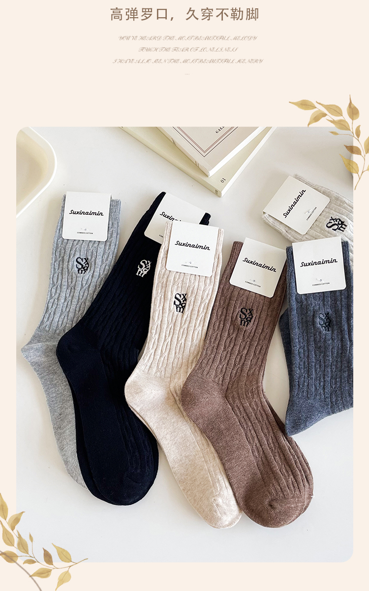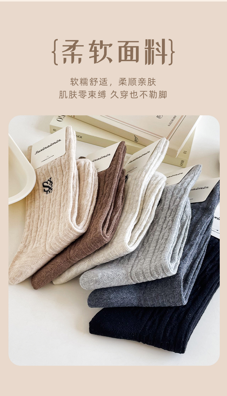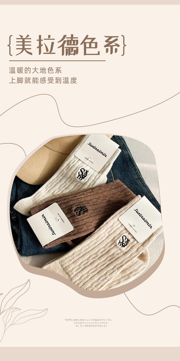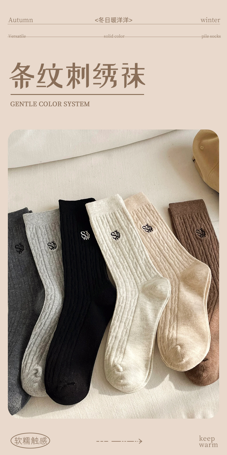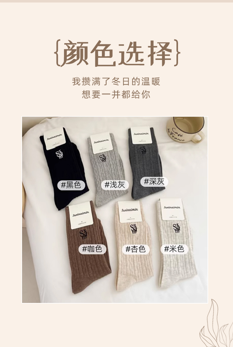 鹿鹿推荐• 美拉德堆堆袜!秋冬美拉德麻花纹针织刺绣中筒袜【贴身衣物不退不换】