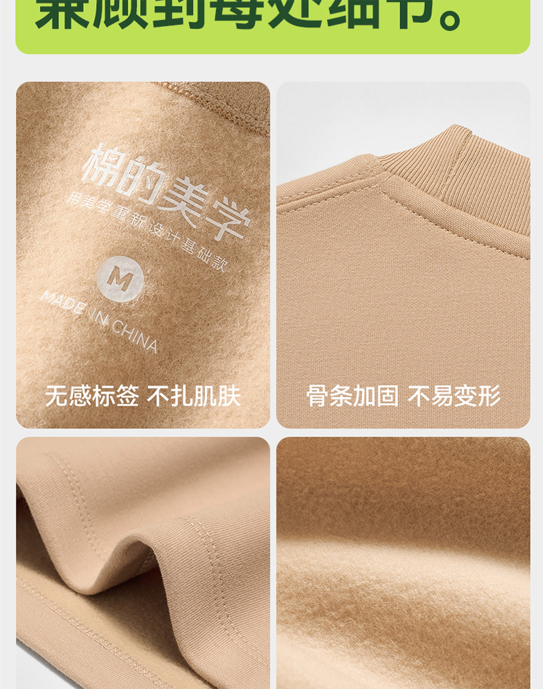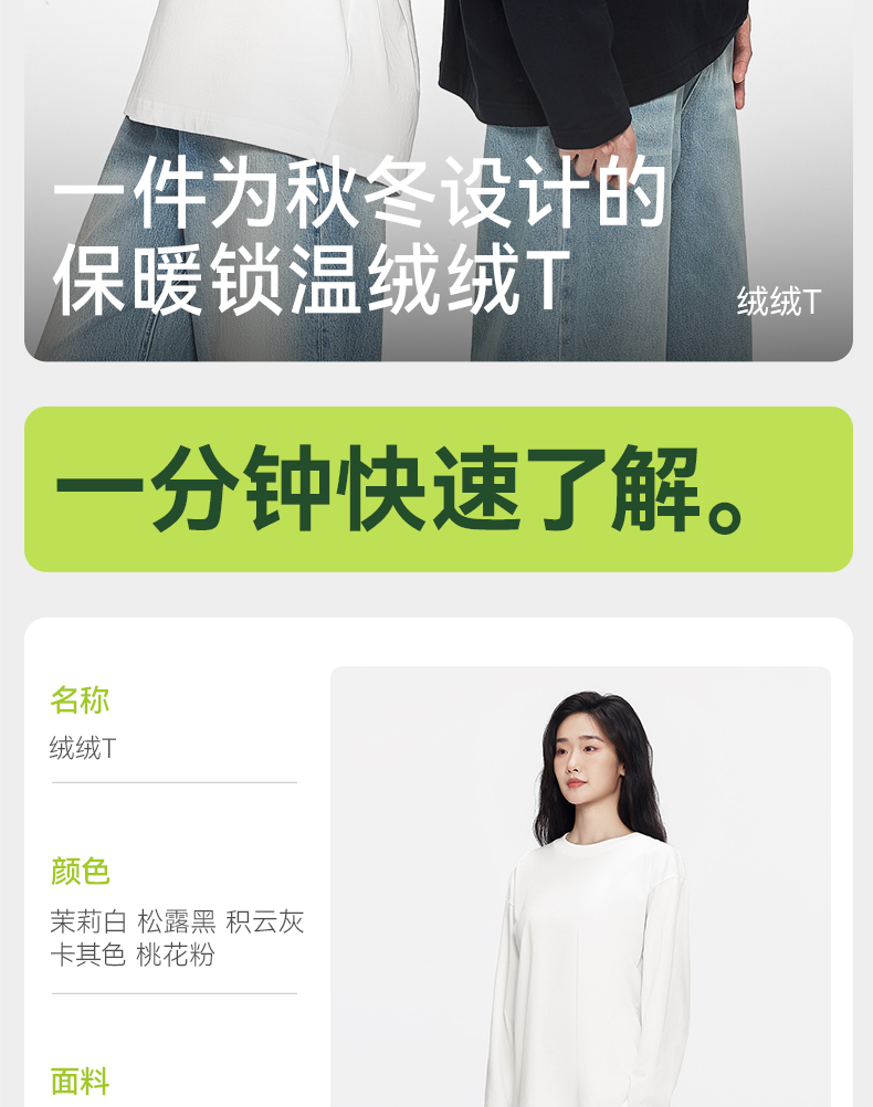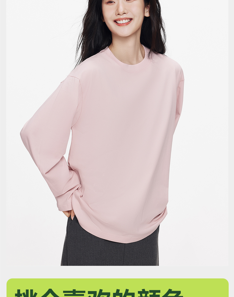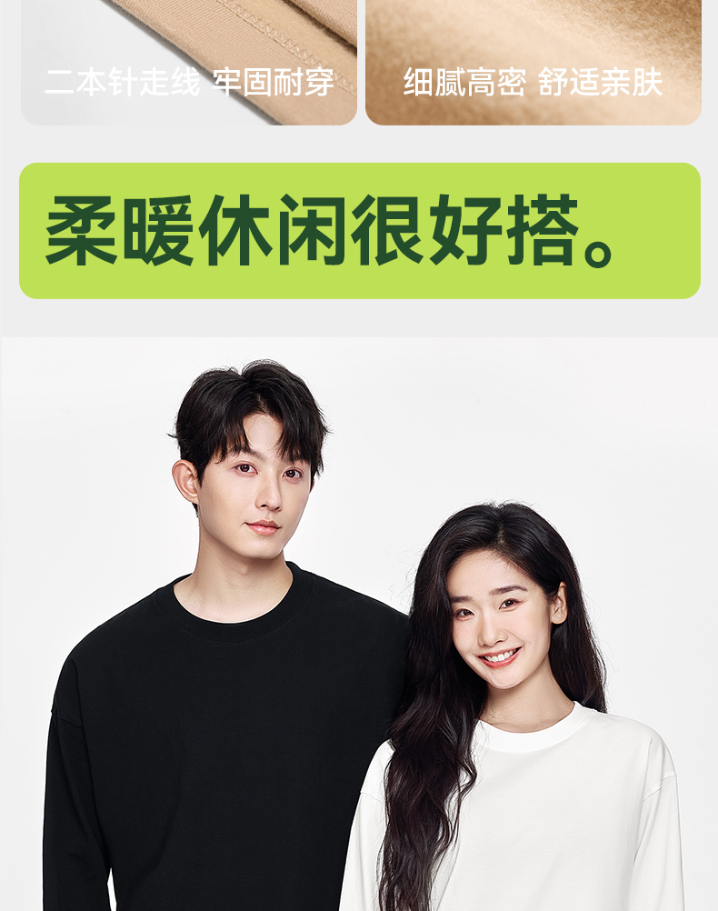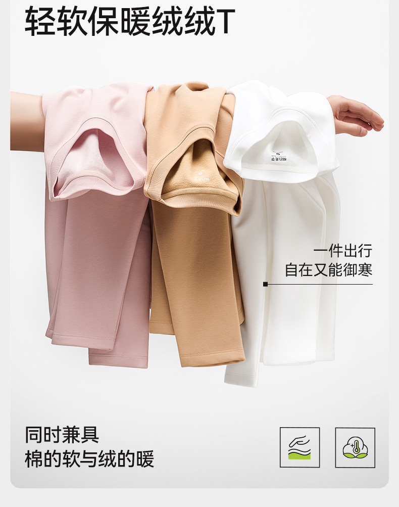 「棉的美学」秋款绒毛圆领长袖打底衫内搭休闲宽松可外穿上衣