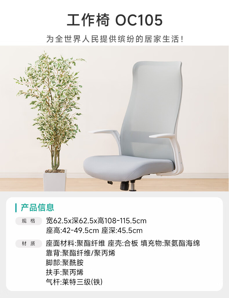 【家具】工作椅 OC105 灰色/白色(需自行安装)