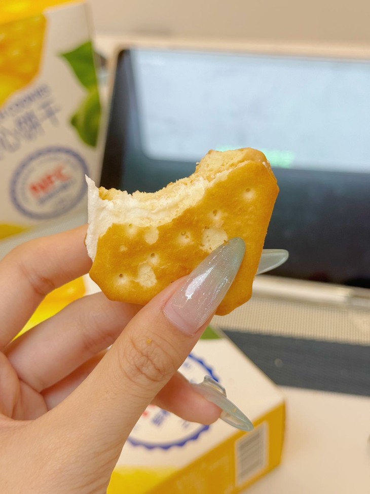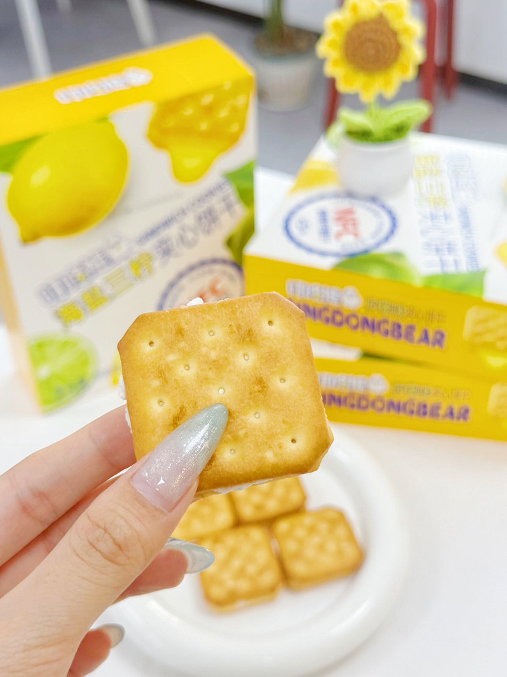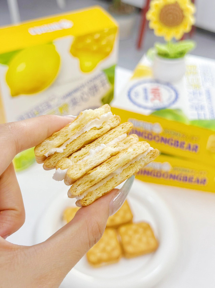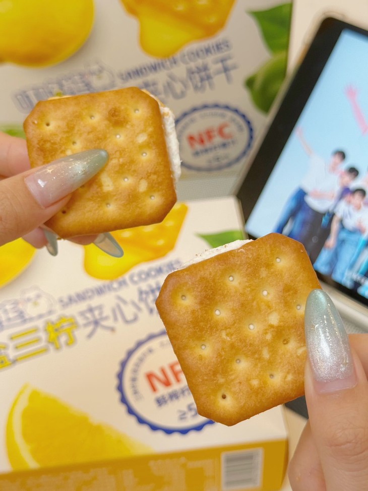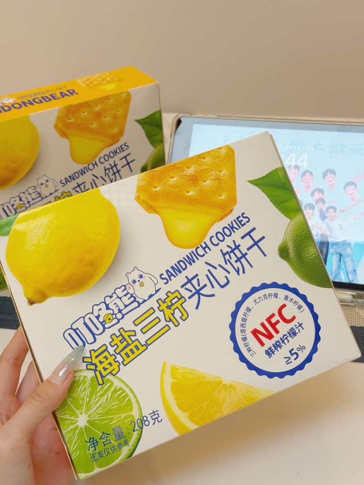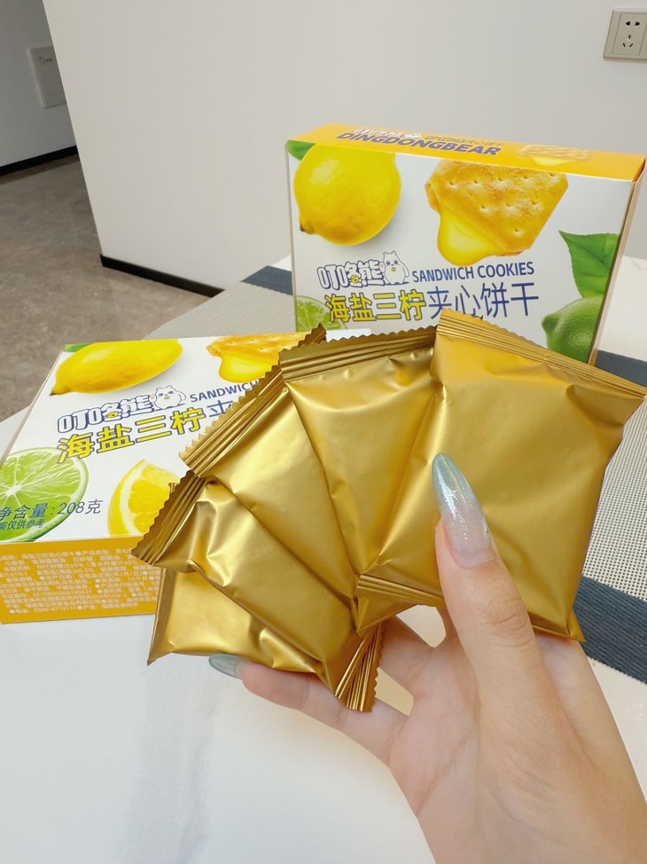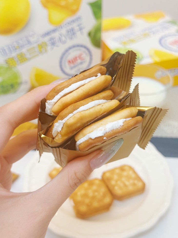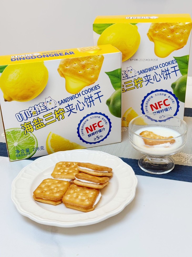 🍪 口感体验: 第一口——酥脆饼干带着小麦香,第二口——柠檬夹心爆出酸甜果汁感,第三口——海盐的微咸悄然浮现,回味无穷! 像咬了一口阳光海岸🌊,柠檬的酸、海盐的咸、饼干的香——根本停不下来! (⚠试吃提醒:千万别泡牛奶!因为会好吃到把牛奶喝光!)