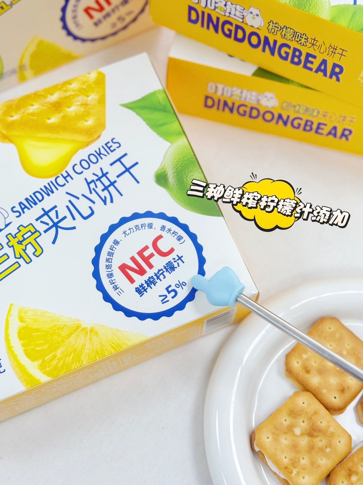 【叮咚熊|海盐三柠夹心饼】 ❄ 三重真柠暴风解腻! ✅三重柠檬汁夹心:精选NFC柠檬汁≥5%(香水柠檬≥3%+尤力克柠檬≥1%+塔西提柠檬≥1%),天然果酸,清爽不腻!