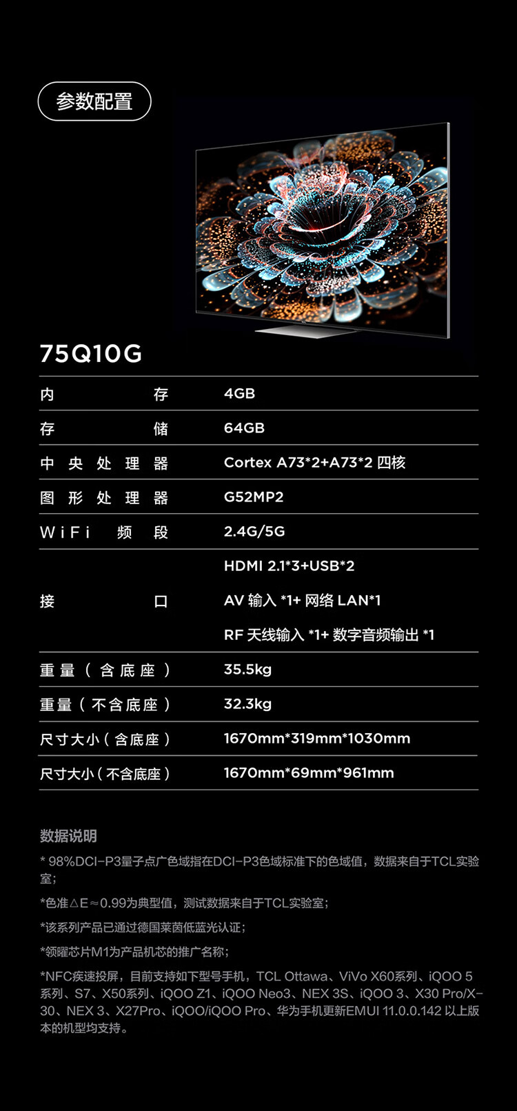TCL电视 75Q10G 75英寸 金属全面屏电视 Mini LED 4K超高清 液晶平板电视机 以旧换新 75英寸 官方标配
